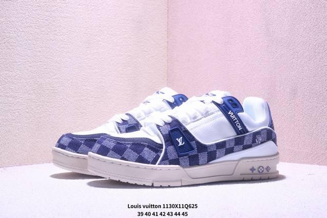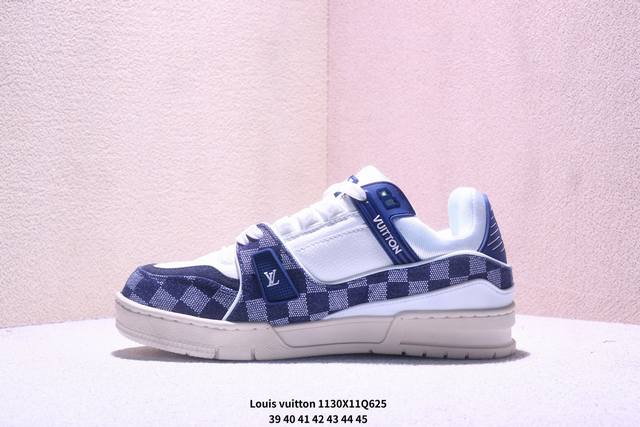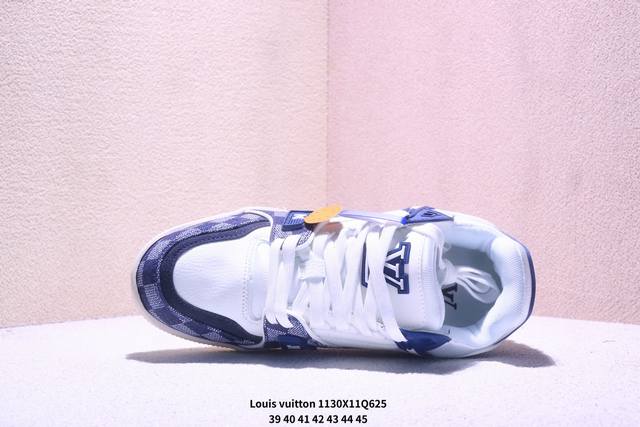Louis Vuitton Trainer Sneaker Low, a versatile casual sportswear shoe. Comfortable, non-slip sole and versatile design dominate the fashion and entertainment industry. Perfected details and a soft leather upper. Exclusive molded outsole. 3D printed iconic logo on the side, exuding aristocratic style. Comes with authentic packaging. Xm1130Q612