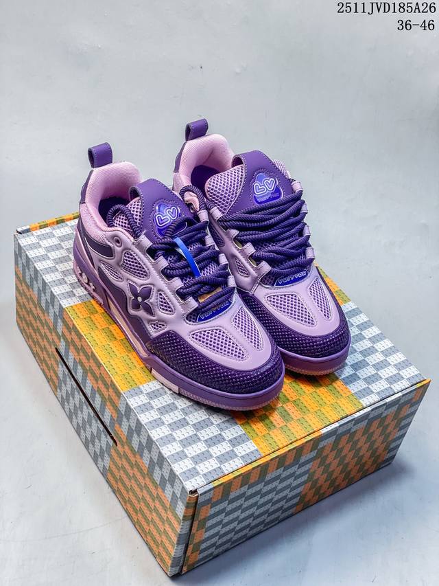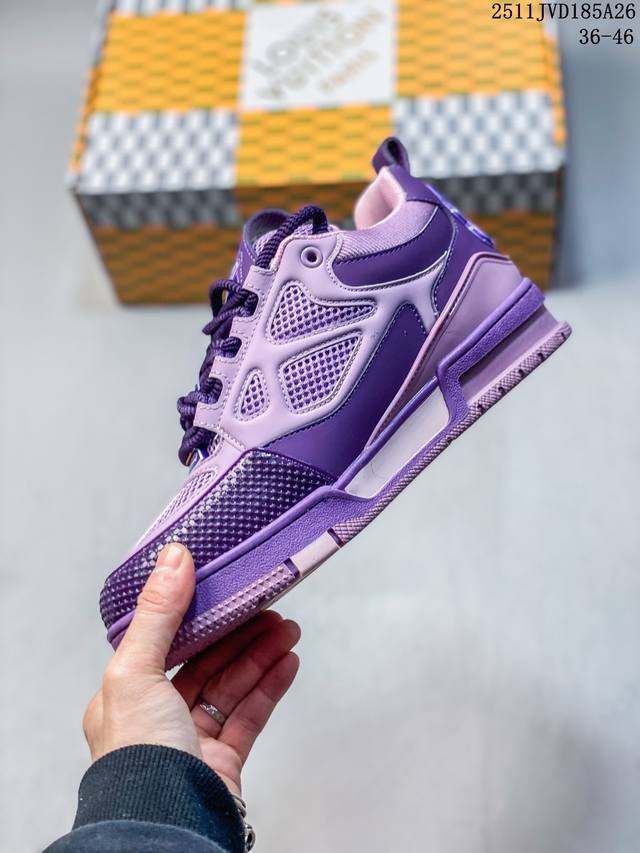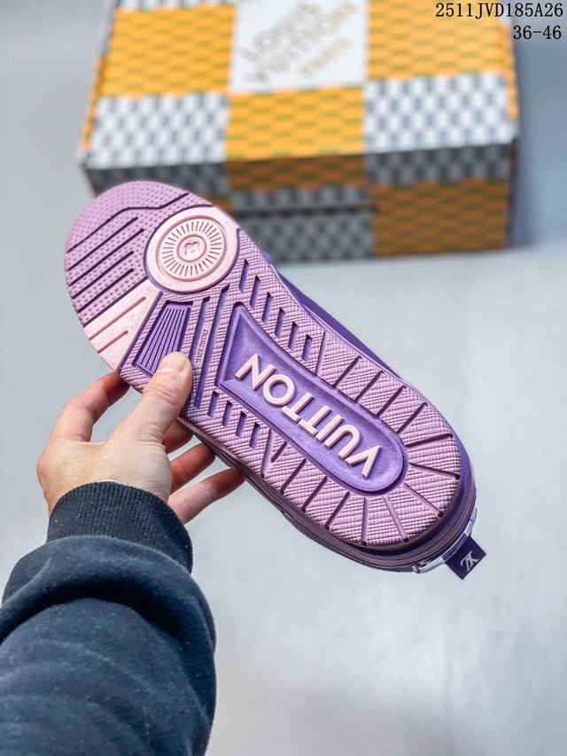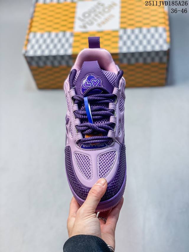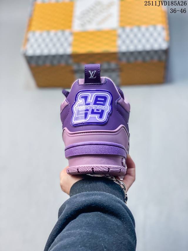 Louis Vuitton Trainer Sneaker. This low-top casual shoe features the Louis Vuitton handwritten logo designed by Artistic Director Virgil Abloh, which highlights the brand's style on the side. Made of 1854 fabric. Size: 36-46. (DDD 11Jvd185A26 DDD)