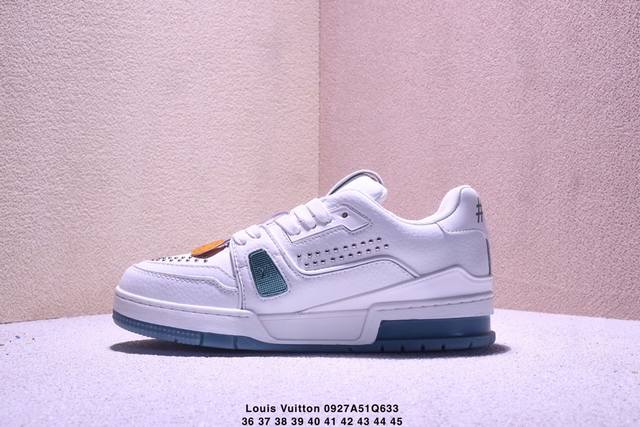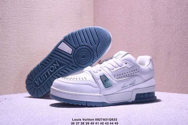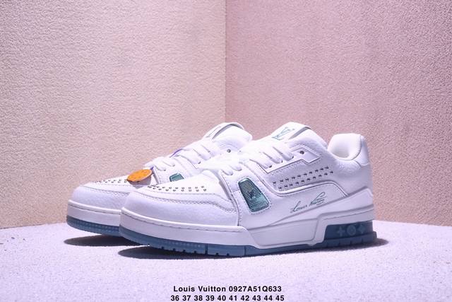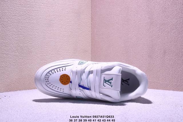 Louis Vuitton ~ White and green hot diamonds, made in Guangdong, high cost performance, made of leather upper material, lambskin lining and deodorizing sea glass footbed, hollow rubber craftsmanship, external wear-resistant rubber outsole, new Lv Louis Vuitton Louis Vuitton Remarque Low classic low-top lace-up casual sports versatile sneakers