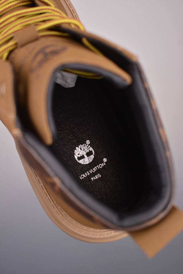 Louis Vuitton x Timberland Collaboration: The iconic yellow boots. A fusion of top luxury brand and timeless classic. High-quality, modern, externally designed with anti-slip rubber foam for a lightweight outsole and easy lace-up design. Features a TPU molded genuine leather upper and Eva technology outsole for slip resistance, durability, and excellent elasticity. Pharrell Williams, as Louis Vuitton's creative director, fully embodies the spirit of this shoe, redefining the classic design of the 6-inch yellow boot and paying homage to the 1996 Grandmaster Flash. Original factory hardware and upgraded shoelace buckles. Manufactured in Zhongshan, using imported leather. Independent molded outsole with correct logo. Top-grain suede with classic monogram collar. Brand new original packaging and shoebox. Exclusively available in the market. Official product number: Vl21682324. Size: 38 39 40 41 42 43 44 Leather shoe size
