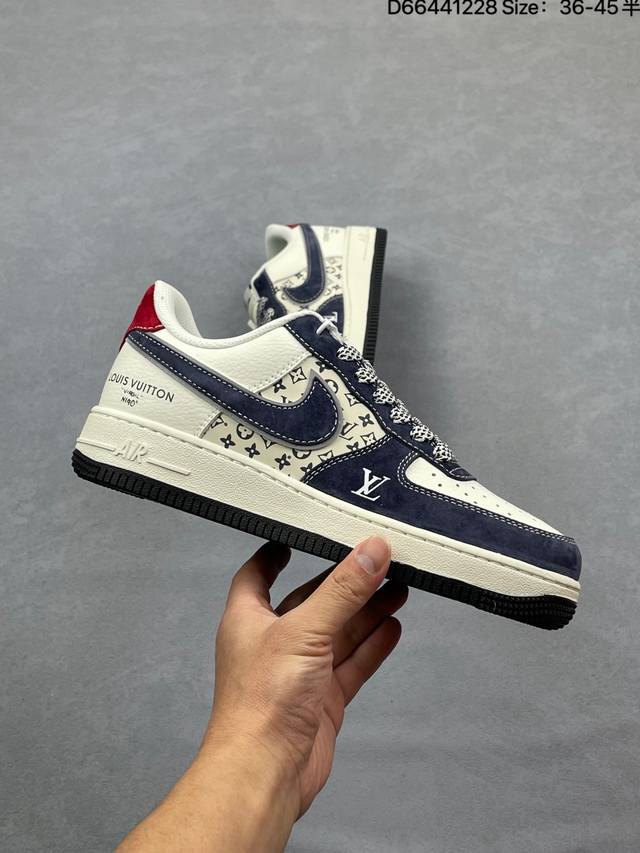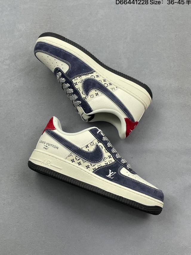 Luxury and Streetwear Combined! The Nike Air Force 1 Low X Louis Vuitton Collaboration Redefines the Ceiling of Streetwear! When the legendary streetwear heritage of the Nike Air Force 1 Low meets the high-end luxury genes of Louis Vuitton, this Cx5050-Y39 collaboration engraves the essence of luxury and streetwear into the very soul of the shoe! The upper is made primarily of premium grey suede, paired with a classic off-white base. Louis Vuitton's signature monogram pattern is subtly displayed on the side, exuding an understated yet exclusive luxury brand style. A touch of red on the white Swoosh adds a striking detail, echoing the red Louis Vuitton lettering on the toe, breaking the monotony and injecting visual tension. Black and white woven laces with metallic details perfectly blend workwear style with a sense of luxury, while the Louis Vuitton logo and exclusive serial number on the heel further enhance the sense of occasion associated with this collaboration. As a highly anticipated collaboration between Air Force 1 and Louis Vuitton, this shoe not only retains the classic silhouette and comfort of the Air Force 1 Low, but also boasts Louis Vuitton's exquisite design, making it a highly sought-after collectible. Whether for everyday street style or as a luxury item in your collection, this Air Force 1 Low x Louis Vuitton collaboration will make you stand out in the fashion world, truly a work of art on your feet! Style Code: Cx5050-Y39 Sizes: 36 36.5 37.5 38 38.5 39 40 40.5 41 42 42.5 43 44 44.5 45 Code: D66441228