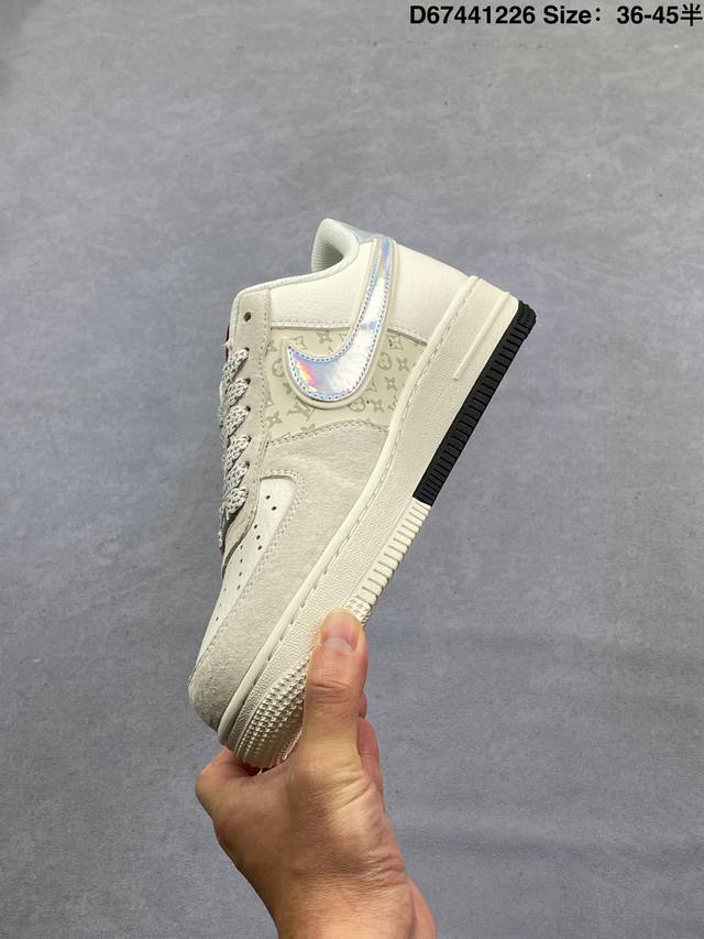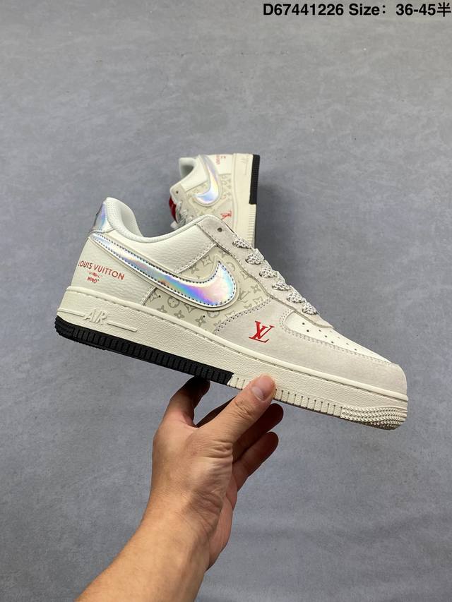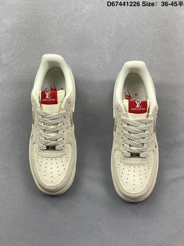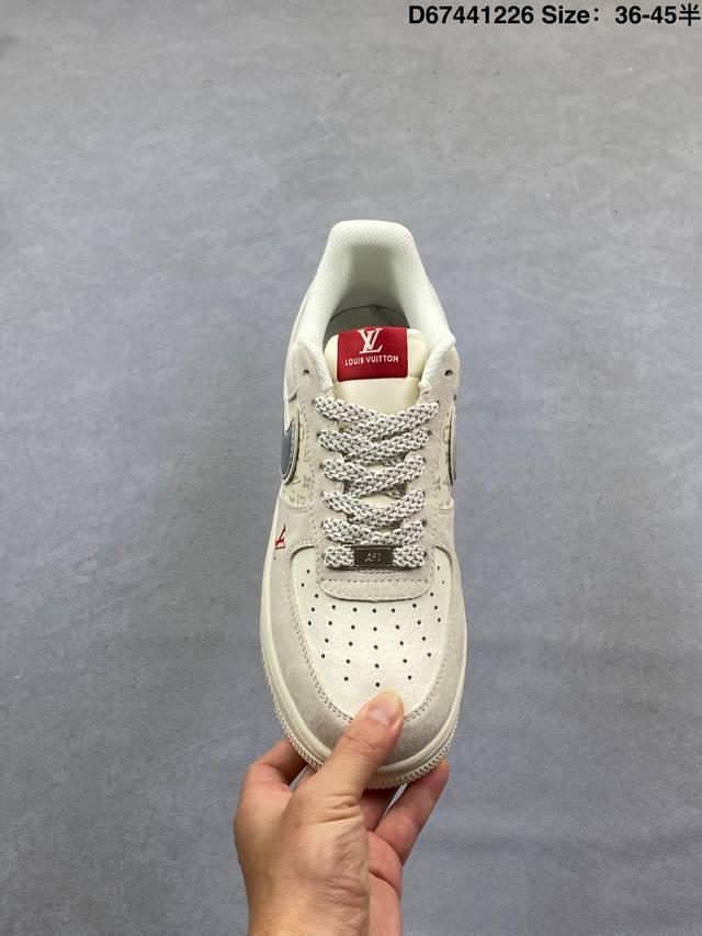 Luxury and Streetwear Combined! The Nike Air Force 1 Low X Louis Vuitton Collaboration Redefines the Ceiling of Streetwear! When the legendary streetwear heritage of the Nike Air Force 1 Low meets the high-end luxury genes of Louis Vuitton, this Cx5050-Y39 collaboration engraves the essence of luxury and streetwear into the very soul of the shoe! The upper is made primarily of premium grey suede, paired with a classic off-white base. Louis Vuitton's signature monogram pattern is subtly displayed on the side, exuding an understated yet exclusive luxury brand style. A touch of red on the white Swoosh adds a striking detail, echoing the red Louis Vuitton lettering on the toe, breaking the monotony and injecting visual tension. Black and white woven laces with metallic details perfectly blend workwear style with a sense of luxury, while the Louis Vuitton logo and exclusive serial number on the heel further enhance the sense of occasion associated with this collaboration. As a highly anticipated collaboration between Air Force 1 and Louis Vuitton, this shoe not only retains the classic silhouette and comfort of the Air Force 1 Low, but also boasts Louis Vuitton's exquisite design, making it a highly sought-after collectible. Whether for everyday street style or as a luxury item in your collection, this Air Force 1 Low x Louis Vuitton collaboration will make you stand out in the fashion world, truly a work of art on your feet! Style Code: Cx5050-Y39 Sizes: 36 36.5 37.5 38 38.5 39 40 40.5 41 42 42.5 43 44 44.5 45 Code: D66441226