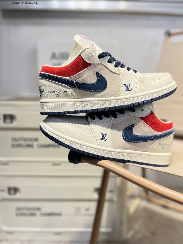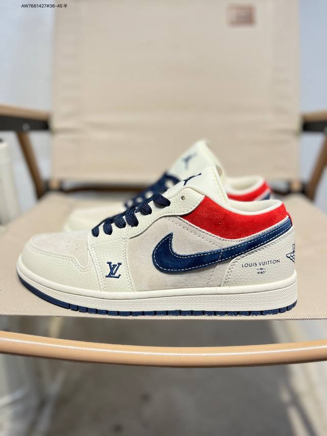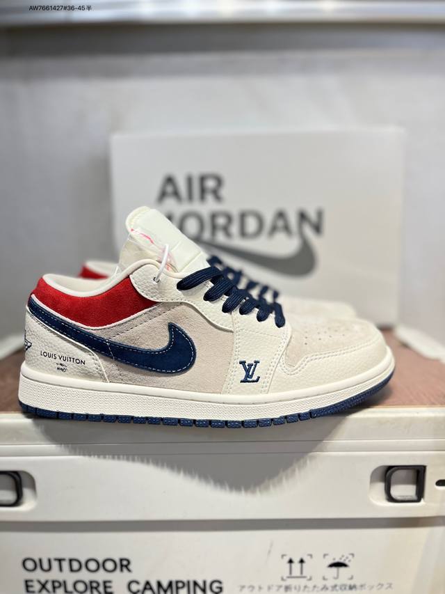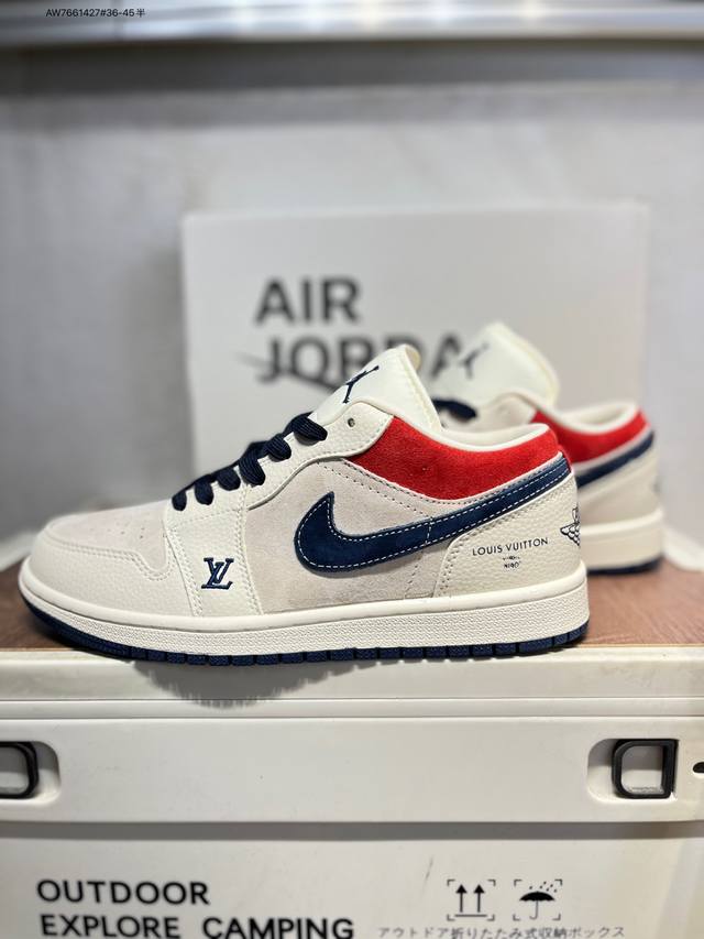 Lv X Jordan Air Jordan 1 Low AJ1 basketball shoes official synchronized colorway original quality product DDD #Rejecting public sole, three-dimensional shoe shape, perfect details, high cleanliness Ld8888 Aw7661427#36-45 half DDD