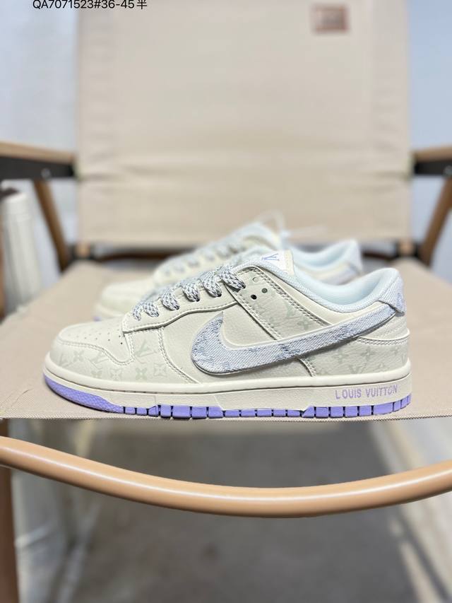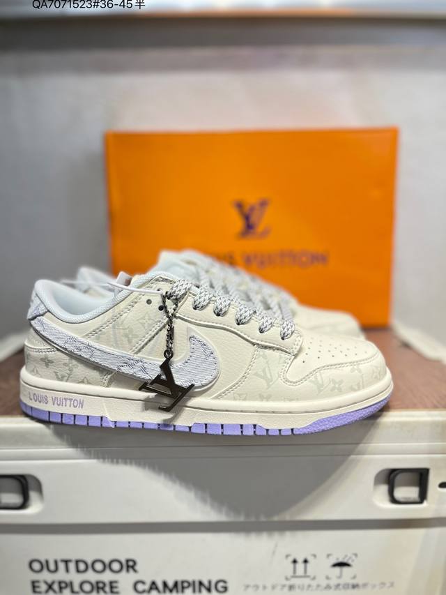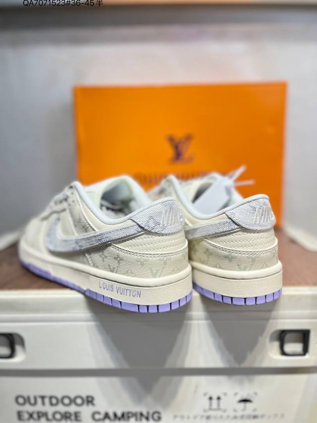 Lv X Nike Dunk Low Sneakers, SB series classic versatile casual sports sneakers. The thickened tongue padding greatly enhances comfort and makes them easier to put on and take off. The midsole incorporates soft and comfortable Zoom Air cushioning, effectively absorbing the impact of landings during extreme sports like skateboarding, providing better protection for street athletes. Px3808 Qa7071523# 36-45 half