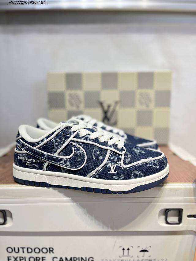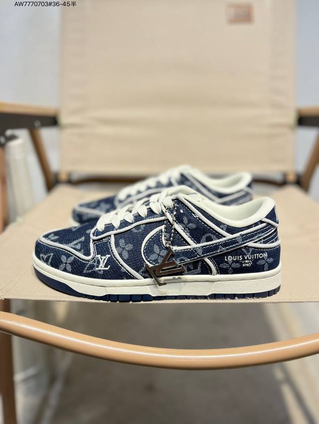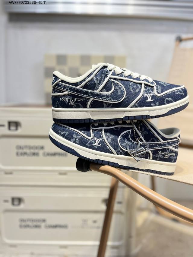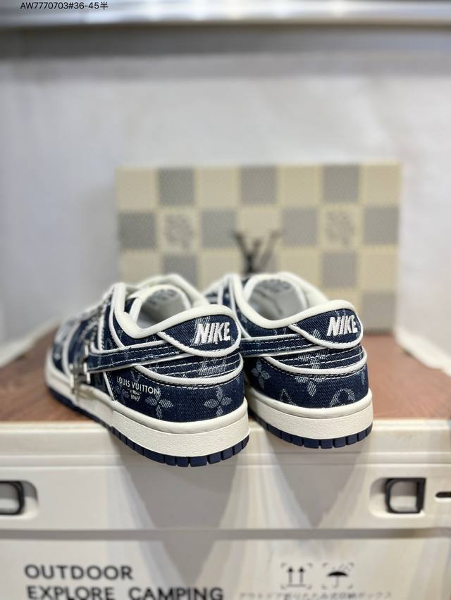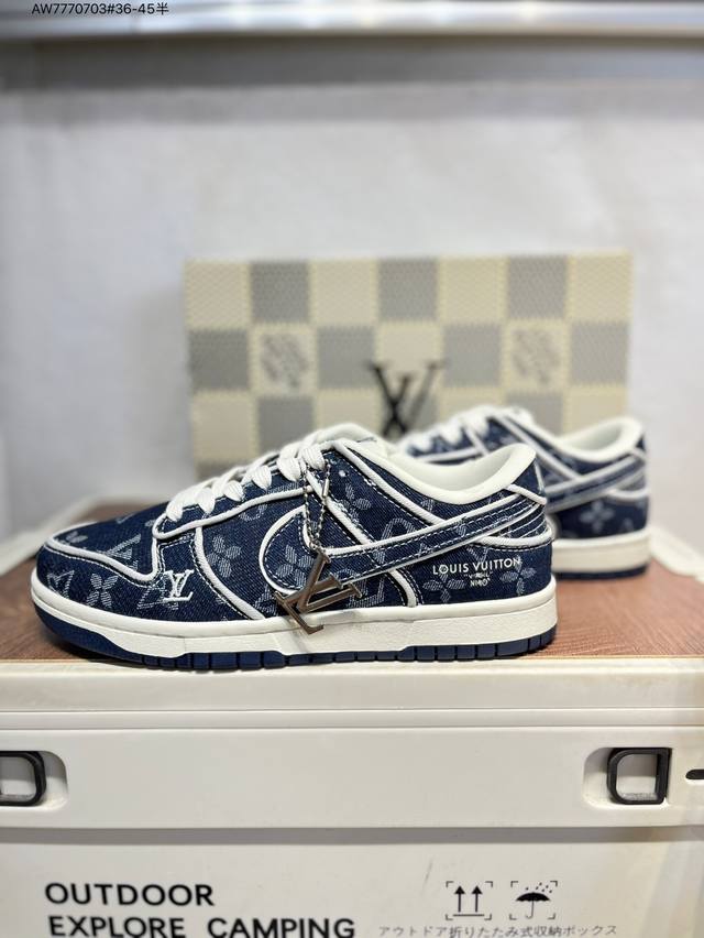 Lv X Nike Sb Dunk Low, a highly recommended new colorway from a leading manufacturer. Made from genuine top-grain material and featuring an exclusive, distilled finish. This shoe offers a superior visual and foot-feeling experience. Highly authentic quality and cleanliness. The leather is meticulously cut, free of burrs, and features impeccable embroidery. Sc0601, Aw7770703, #36-45, half-
