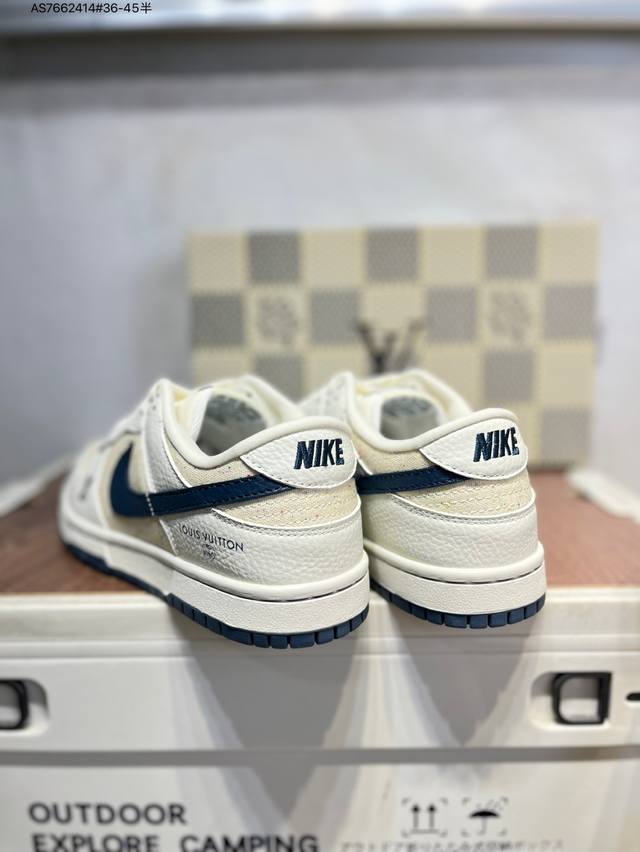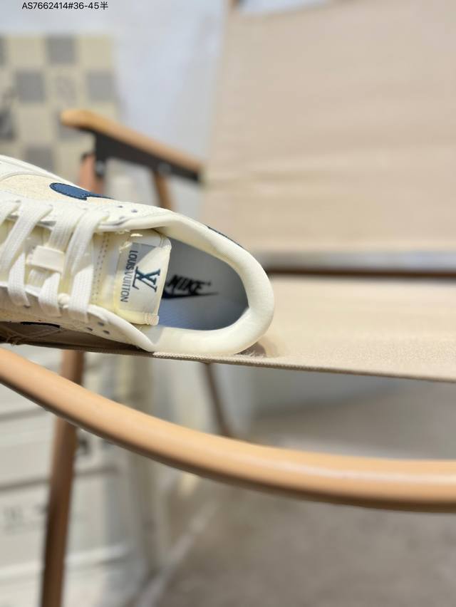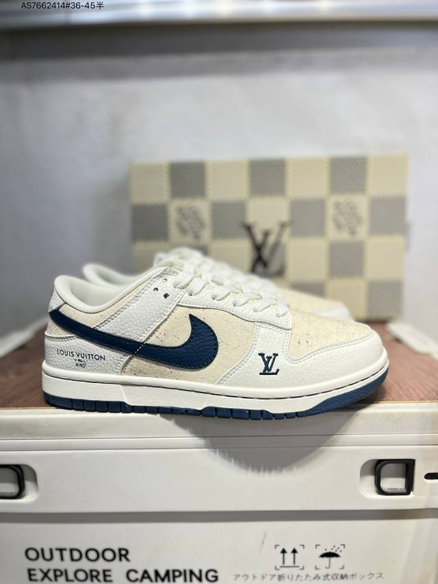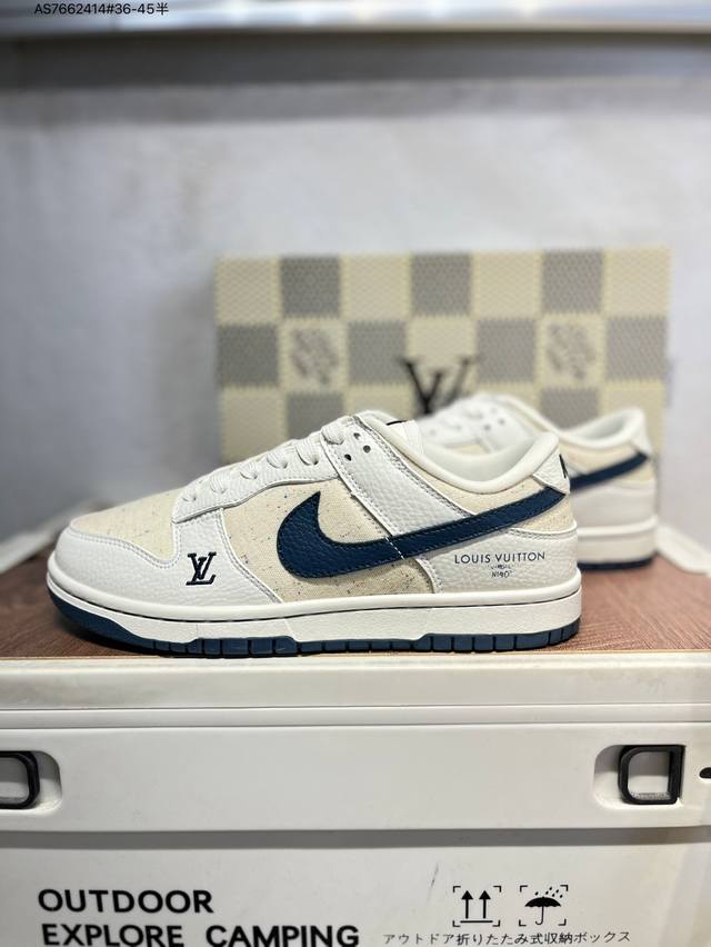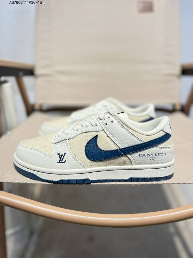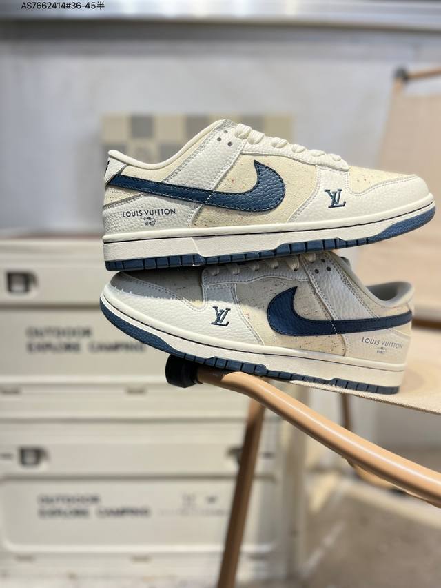 Lv X Nike Sb Dunk Low, a highly recommended new colorway from a leading manufacturer. Made from genuine top-grain material and featuring an exclusive, distilled finish. This shoe offers a superior visual and foot-feeling experience. Highly authentic quality and cleanliness. The leather is meticulously cut, free of burrs, and features impeccable embroidery. Sc0601 As7662414 #36-45 semi-