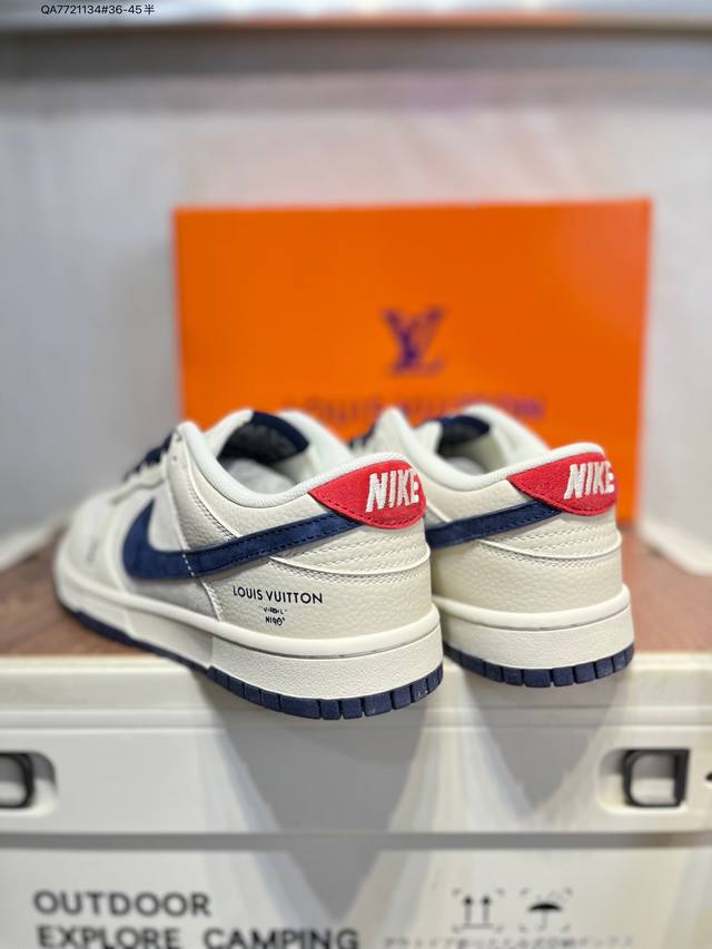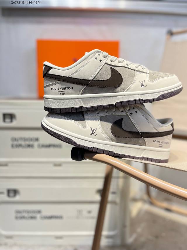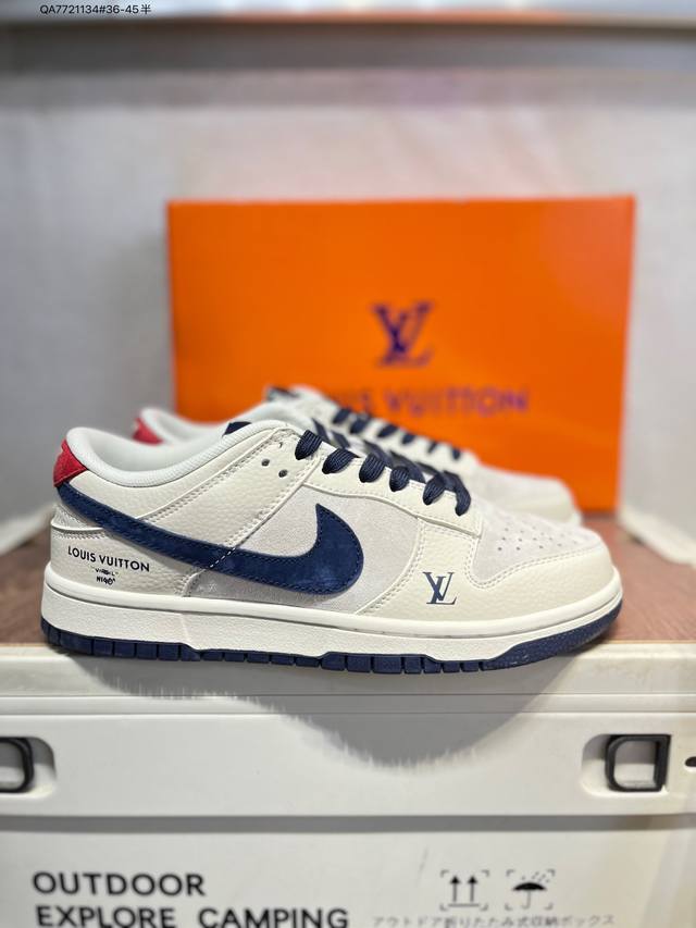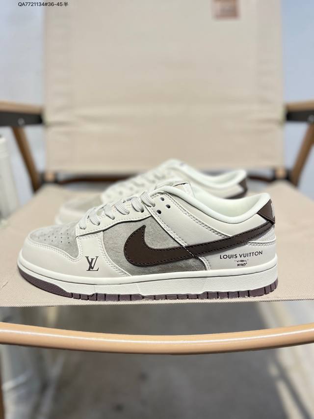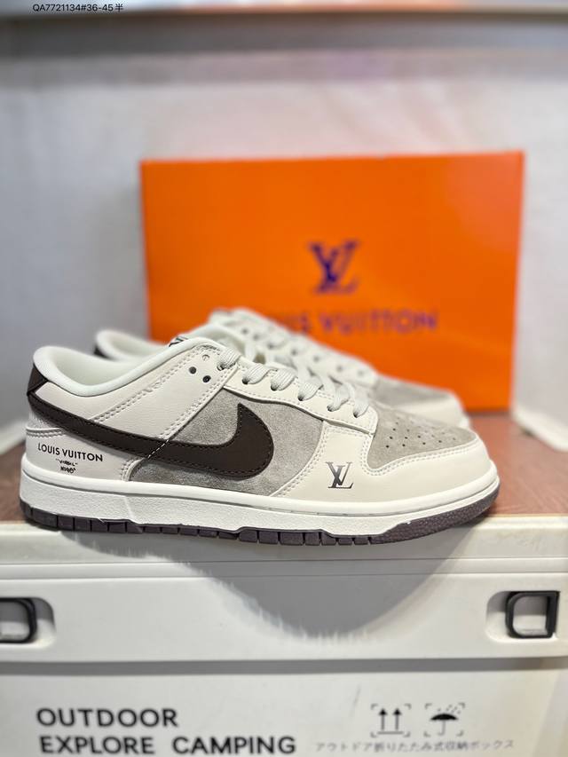 Lv X Nike SB Dunk Low, a highly recommended new colorway from a major manufacturer. Made with original top-grain materials and featuring exclusive steam-drying processing for a superior visual and tactile experience. High-quality factory-direct shipping with excellent cleanliness. Features include electro-embroidery, clean leather cutting, and no rough edges. Fc1688 Qa7721134 #36-45.5