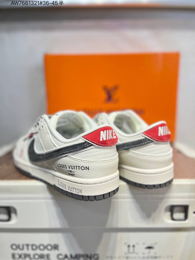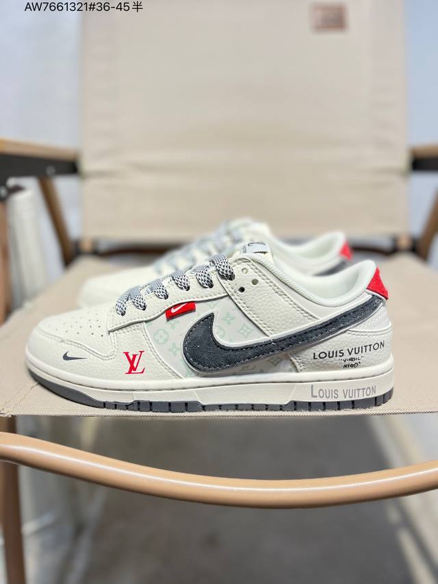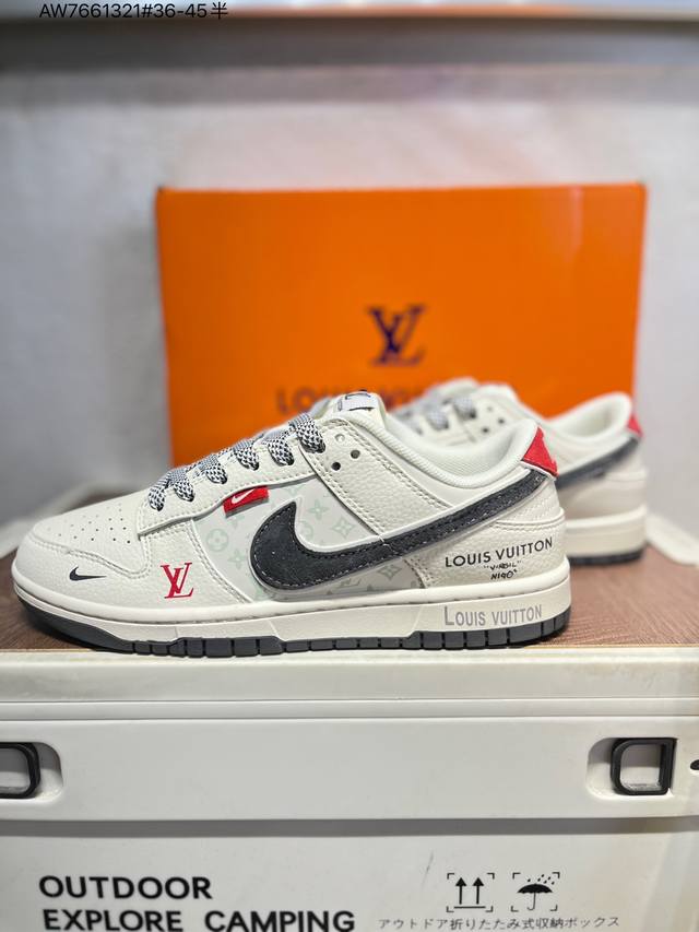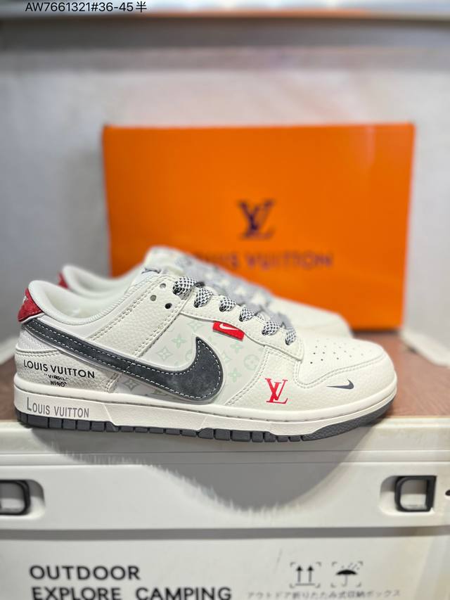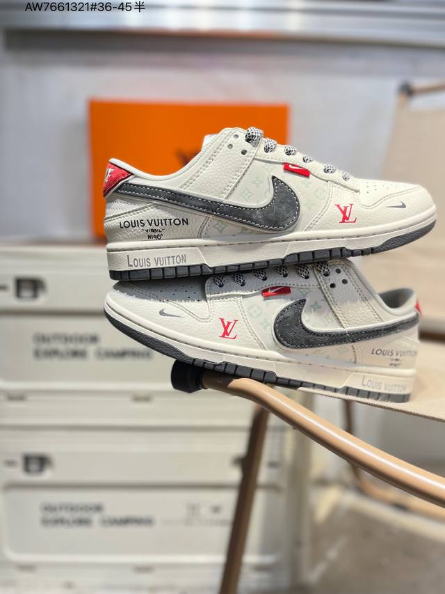 Lv X Nike SB Dunk Low. Highly recommended new colorway from a major manufacturer. Made with original top-grain materials and a unique design using steam distillation. Offers a superior visual and tactile experience. High-quality factory-direct shipping. Excellent cleanliness. Features include electric embroidery, clean leather cutting with no rough edges, and perfect details. Ht5088 Aw7661321# 36-45.5.