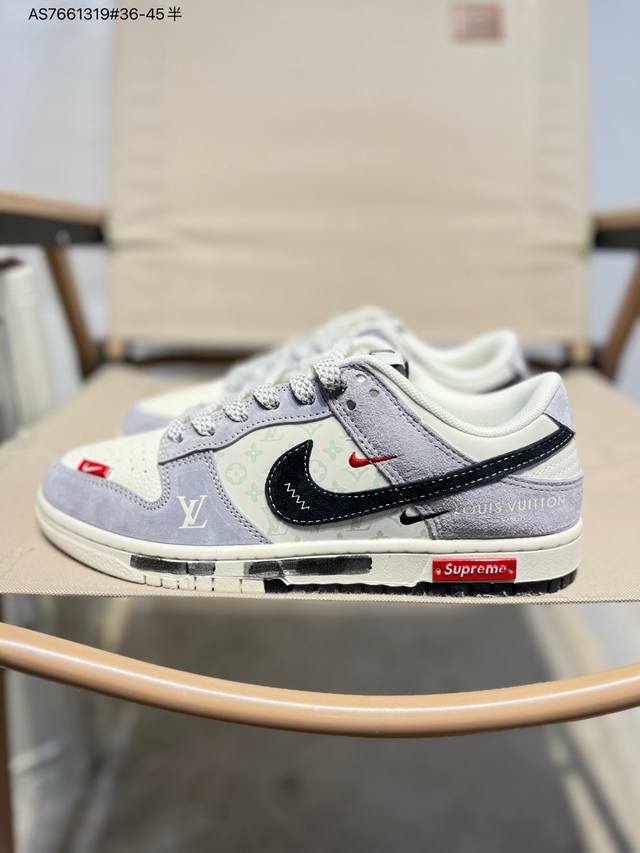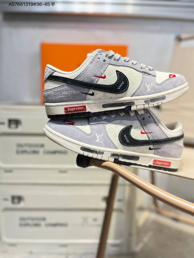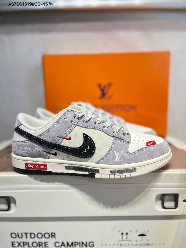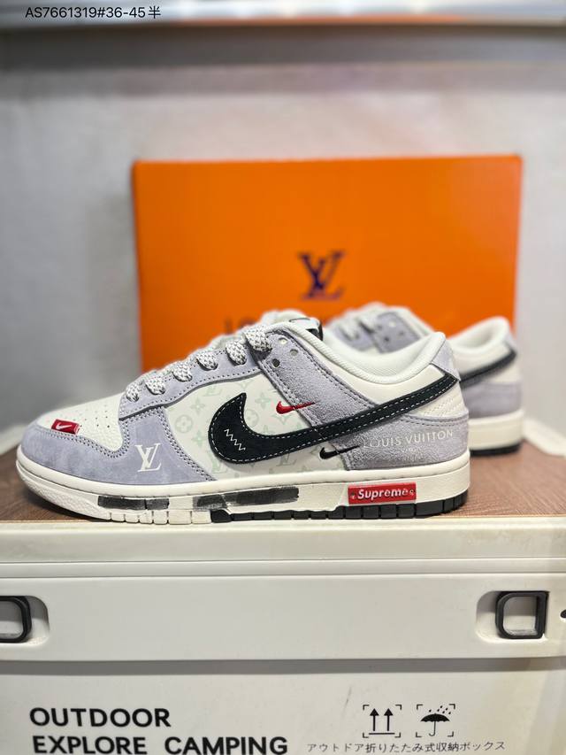 Lv X Nike SB Dunk Low. Highly recommended new colorway from a major manufacturer. Made with original top-grain materials and a unique design using steam distillation. Offers a superior visual and tactile experience. High-quality factory-direct shipping with excellent cleanliness. Features include electro-embroidery, clean leather cutting with no rough edges, and perfect details. (Cx5050 As7661319 #36-45.5)