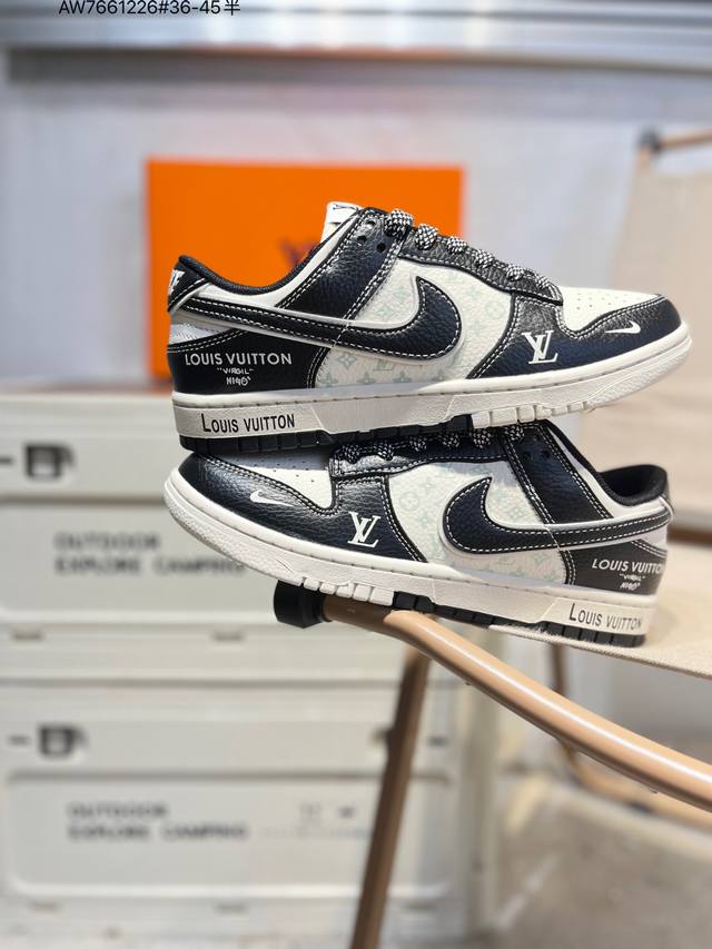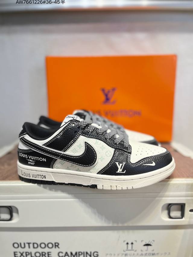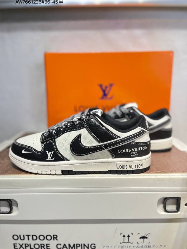 Lv X Nike SB Dunk Low. Highly recommended new colorway from a major manufacturer. Made with original top-grain materials and a unique design using steam distillation . Offers a superior visual and tactile experience. High-quality factory-direct shipping. Excellent cleanliness. Features include electric embroidery, clean leather cutting with no rough edges, and perfect details. Ht5088 Aw7661226# Sizes 36-45.5.