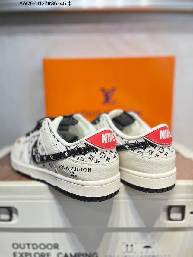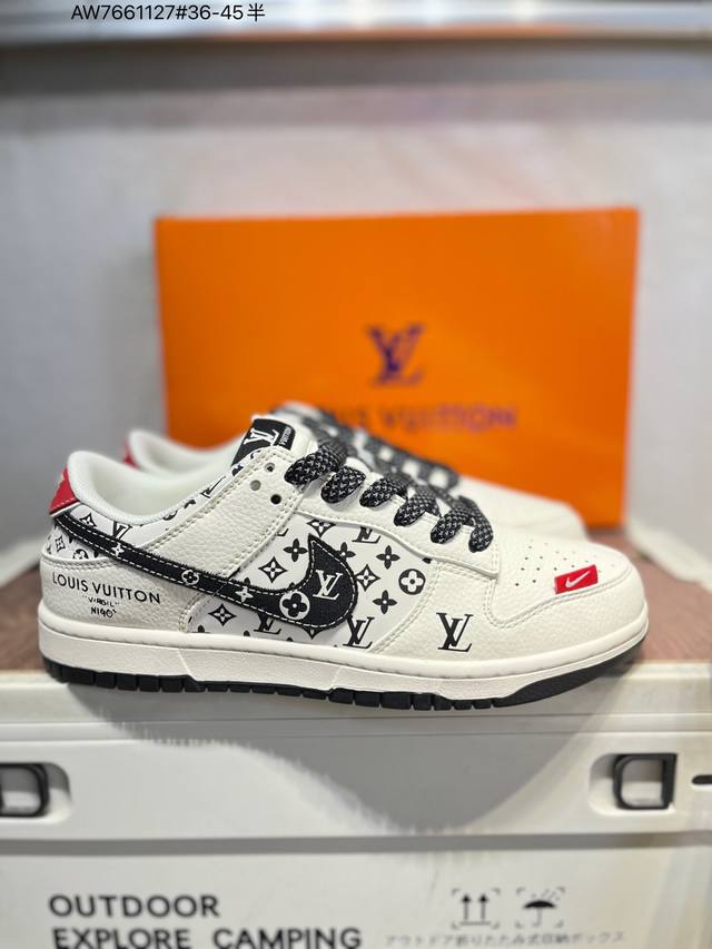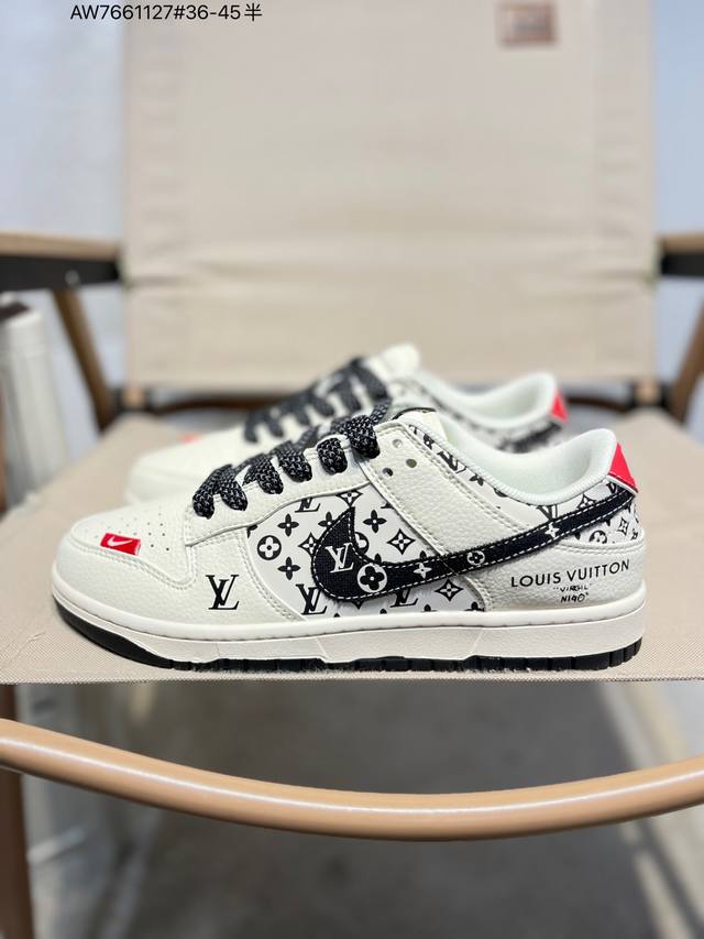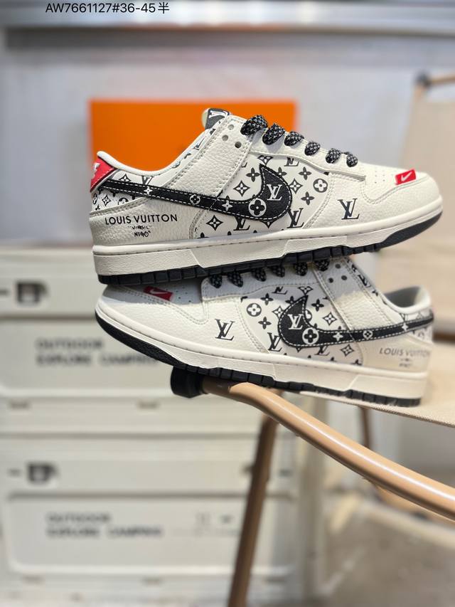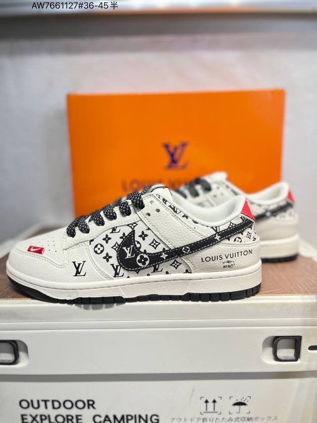 Lv X Nike SB Dunk Low. Highly recommended new colorway from a major manufacturer. Made with original top-grain materials and a unique design using steam distillation. Offers a superior visual and tactile experience. High-quality factory-direct shipping with excellent cleanliness. Features include embroidered leather with clean cuts and no rough edges, perfect details. Ht5088 Aw7661127# Sizes 36-45.5.