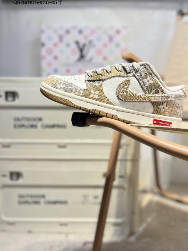 Lv X Nike SB Dunk Low. Highly recommended new colorway from a major manufacturer. Made with original top-grain materials and a unique design using steam distillation. Offers a superior visual and tactile experience. High-quality factory-direct shipping with excellent cleanliness. Features include clean, embroidered leather with no rough edges and perfect details. Sc9772 Qs7801019# 36-45.5.