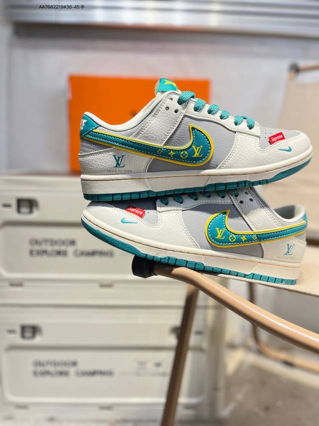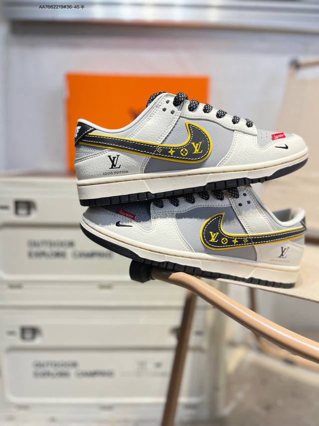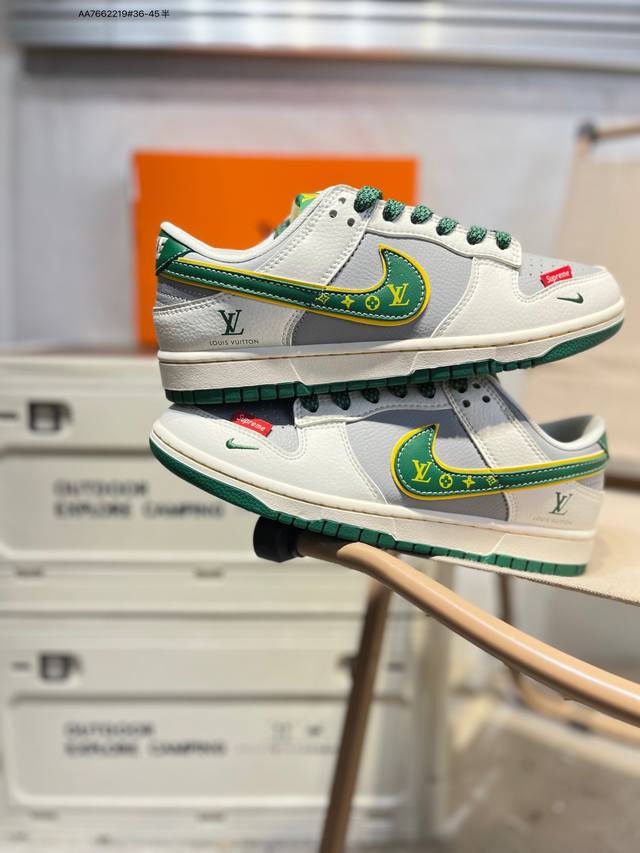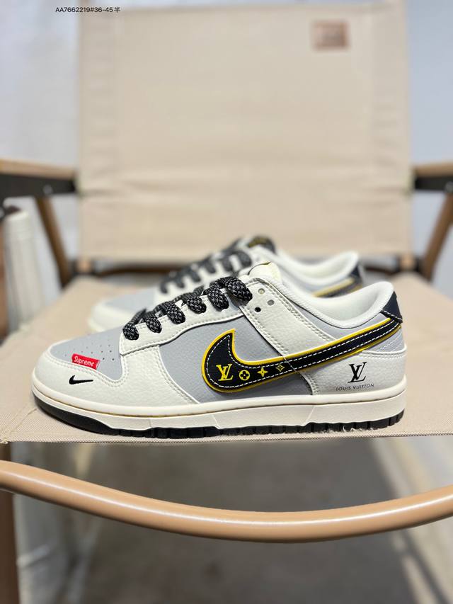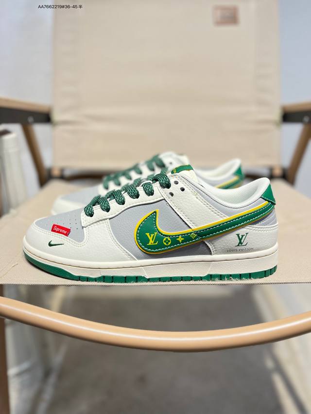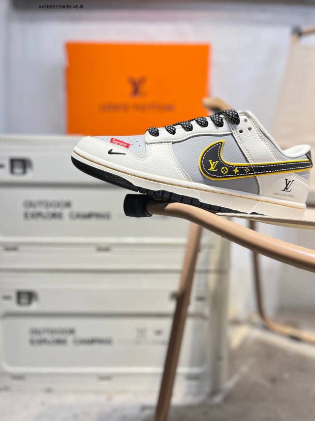 Lv X Nike SB Dunk Low. Highly recommended new colorway from a major manufacturer. Made with original top-grain materials and a unique design using steam distillation. Offers a superior visual and tactile experience. High-quality factory-direct shipping with excellent cleanliness. Features include electro-embroidery, clean leather cutting with no rough edges, and perfect details. Zy1618 Aa7662219# 36-45.5.