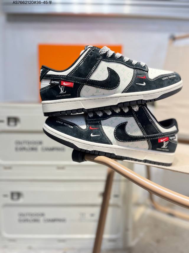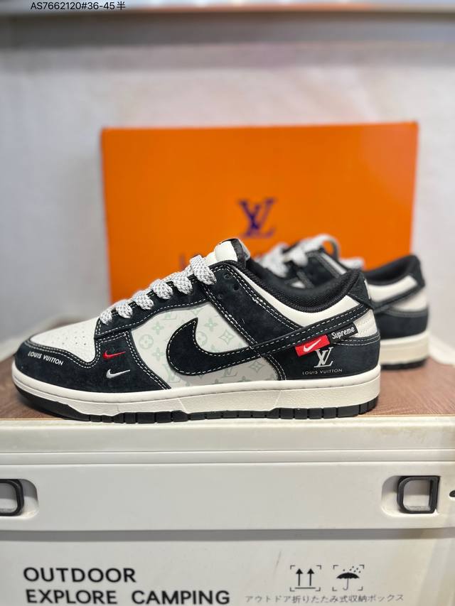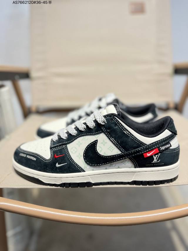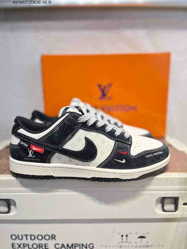 Lv X Nike SB Dunk Low. Highly recommended new colorway from a major manufacturer. Made with original top-grain materials and a unique design using steam distillation. Offers a superior visual and tactile experience. High-quality factory-direct shipping with excellent cleanliness. Features include electro-embroidery, clean leather cutting with no rough edges, and perfect details. (Cx5050 As7662120 #36-45.5)