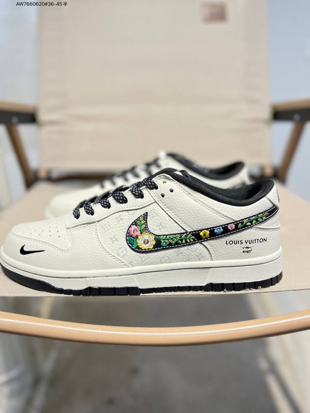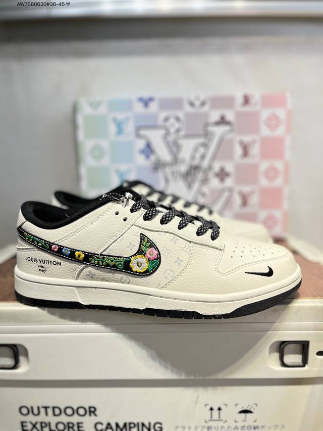 Lv X Nike SB Dunk Low, Highly Recommended New Colorway from Major Factory. Made with original top-grain materials and featuring exclusive steam-drying processing for a superior visual and tactile experience. High-quality factory-direct shipping with impeccable cleanliness. Features include electro-embroidery, clean leather cutting with no rough edges, and perfect details. (Ds6608 Aw7660620 #36-45.5)