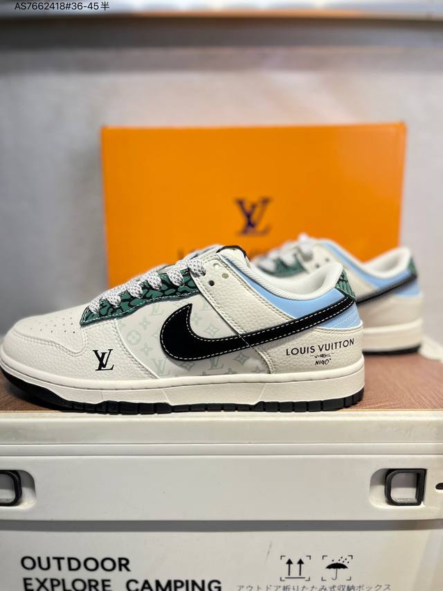 Lv X Nike SB Dunk Low, Highly Recommended New Colorway from Major Factory. Made with original top-grain materials and featuring exclusive steam-drying processing for a superior visual and tactile experience. High-quality factory-direct shipping with impeccable cleanliness. Features include electro-embroidery, clean leather cutting with no rough edges, and perfect details. Xs6089 As7662418 #36-45.5