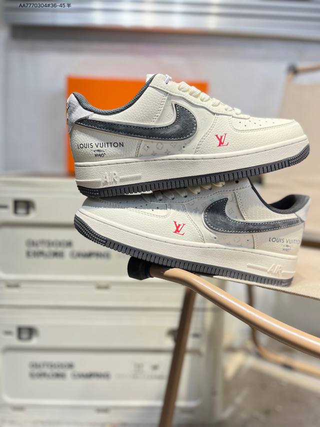 Lv X Nk Air Force 1 '07 Low Casual Sneakers #Custom Leather, Original Last and Cardboard, Authentic Air Force Style, High Cleanliness, Built-in Full-Length Air Cushion Mz9588 Aa7770304# Sizes 36-45 (Half)