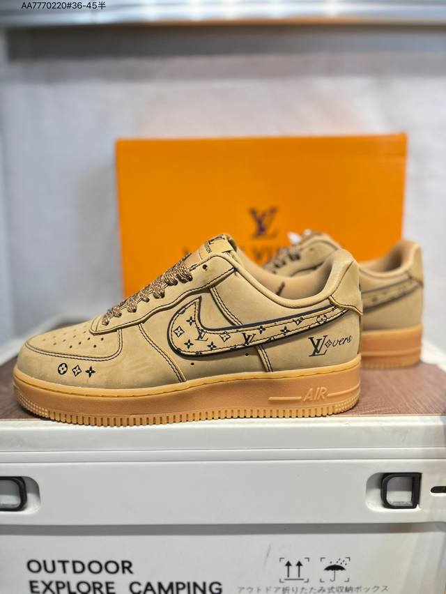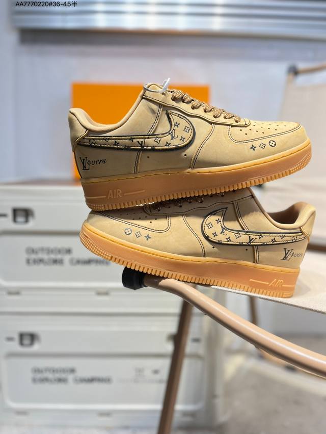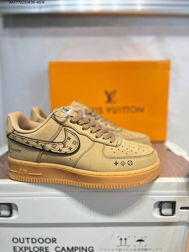 Lv X Nk Air Force 1'07 Low Air Force One Low-top Casual Sneakers#Custom leather, original last, original cardboard, pure Air Force version, high cleanliness, built-in full-palm air cushion Dk0188 Aa7770 #36-45 half