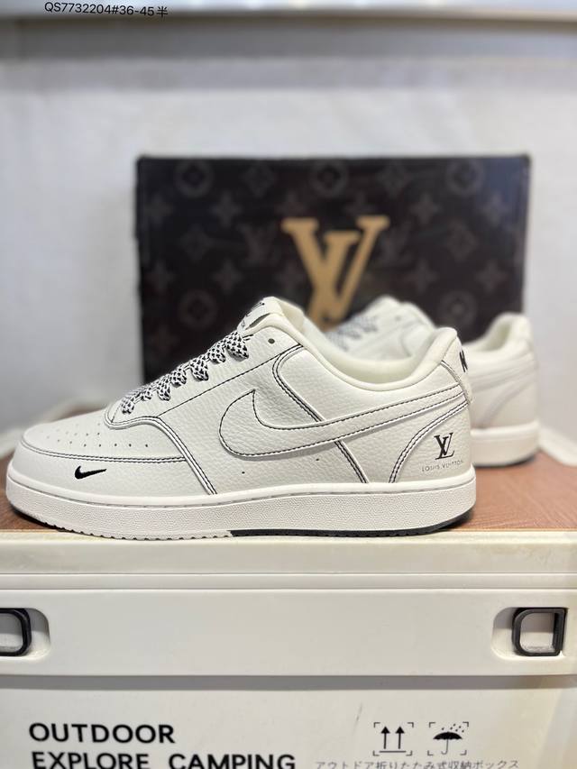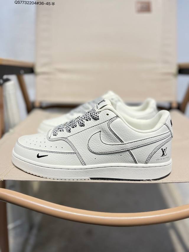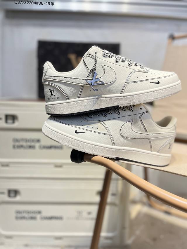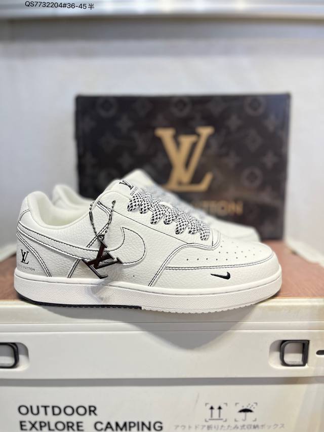 Lv X Nk Court Borough Air Force Casual Sports Sneakers: A versatile, breathable, and durable design that balances comfort and style. A masterpiece of craftsmanship, the structural support and snug fit, combined with a retro basketball design, create an off-court all-star look. Cs5288 Qs773 4# 36-45 Half