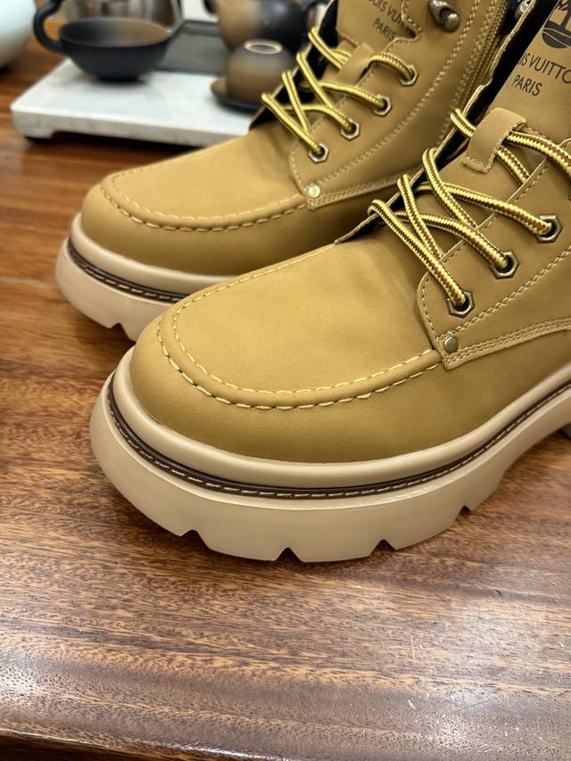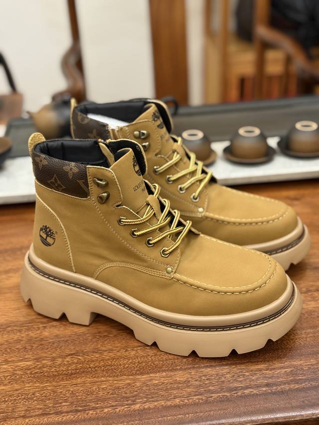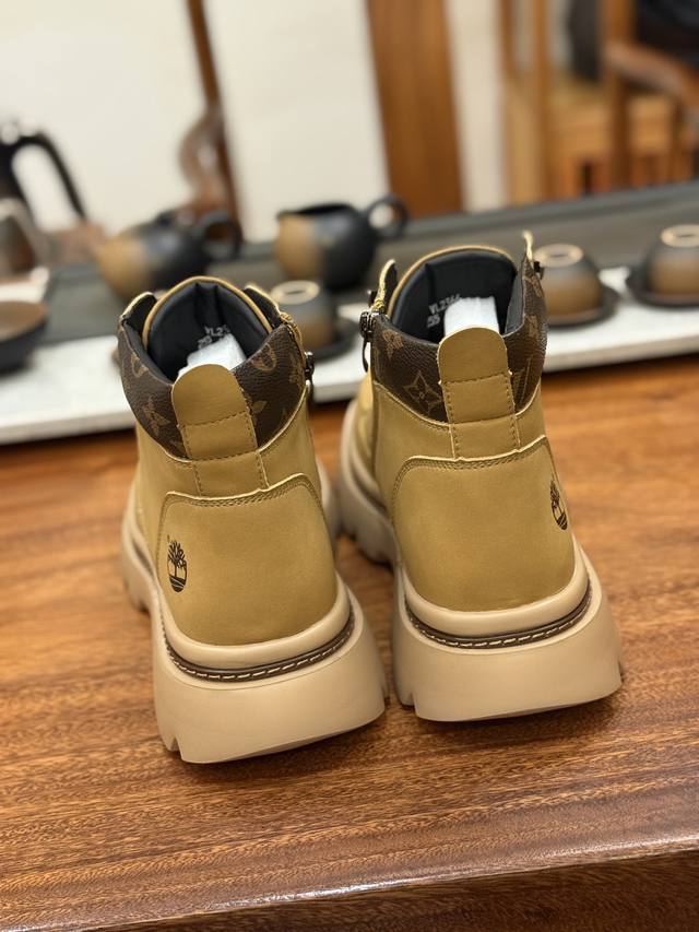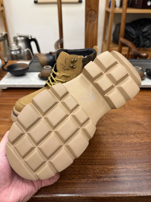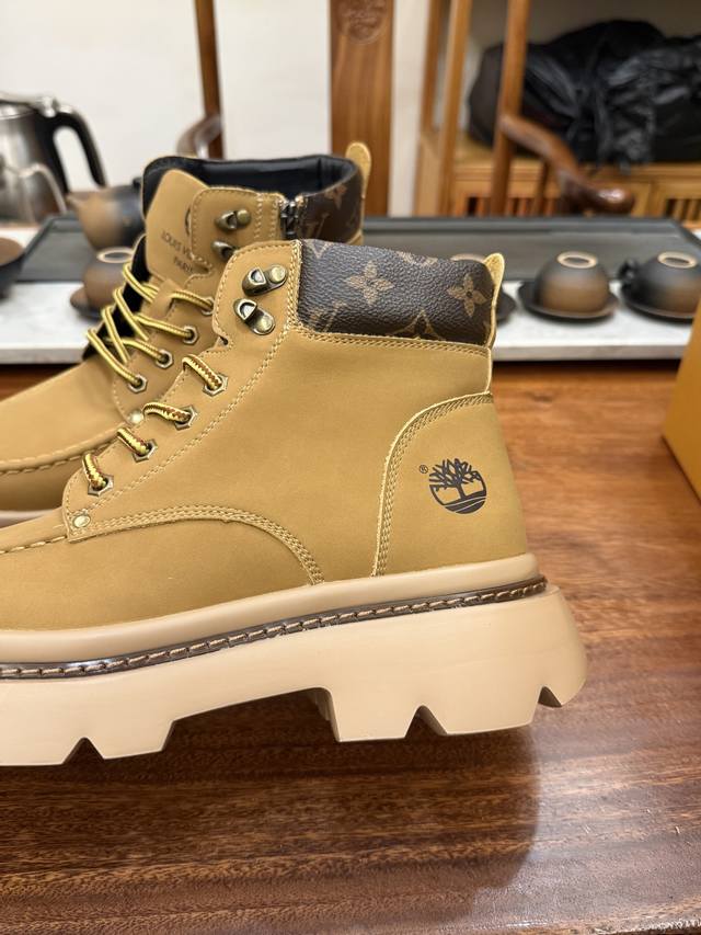 LV X Timberland LV Collaboration: A fusion of top luxury brand and timeless classic design. First showcased at Paris Fashion Week. High-quality, modern, externally designed anti-slip rubber foam, ultra-lightweight outsole, lace-up design for easy on and off. Made with TPU molded genuine leather upper. Eva technology outsole provides anti-slip, wear-resistant, and excellent elasticity. Pharrell Williams, as Louis Vuitton's creative director, fully embodies this style, redefining the classic design of the 6-inch Timberland boot. A tribute to the 1996 Grandmaster Flash classic yellow boot. Original factory hardware and upgraded shoelace buckles. Manufactured in Zhongshan, using imported leather. Independent mold outsole with correct logo. Top-grain suede leather with classic monogram collar. Brand new original packaging and shoebox. Exclusively available in the market. Sizes: 38-44 (dress shoe size).