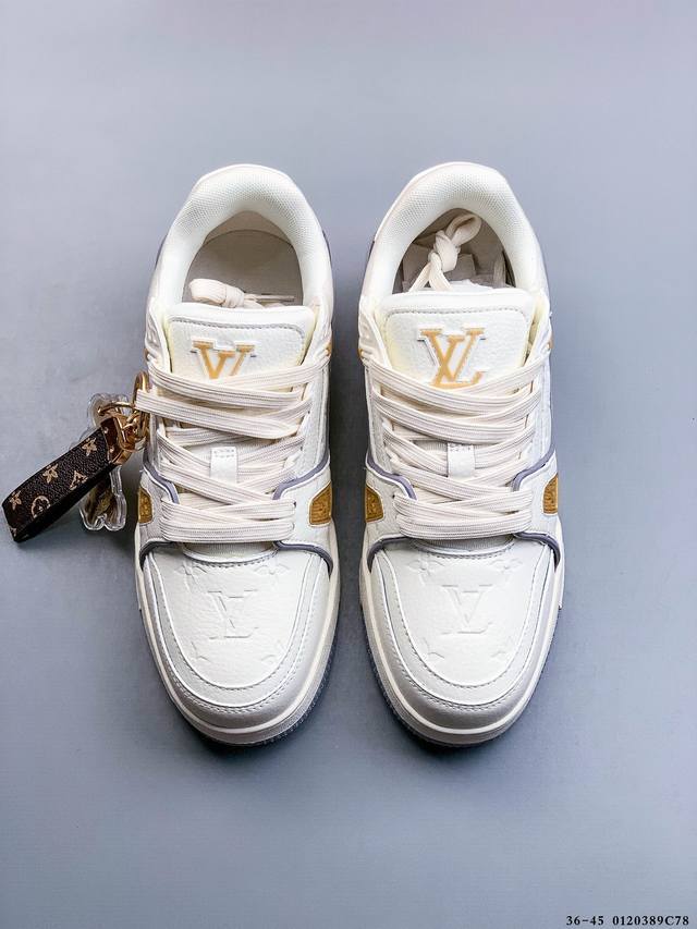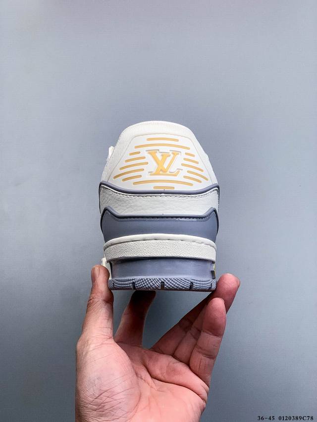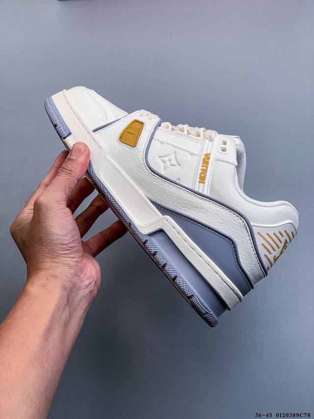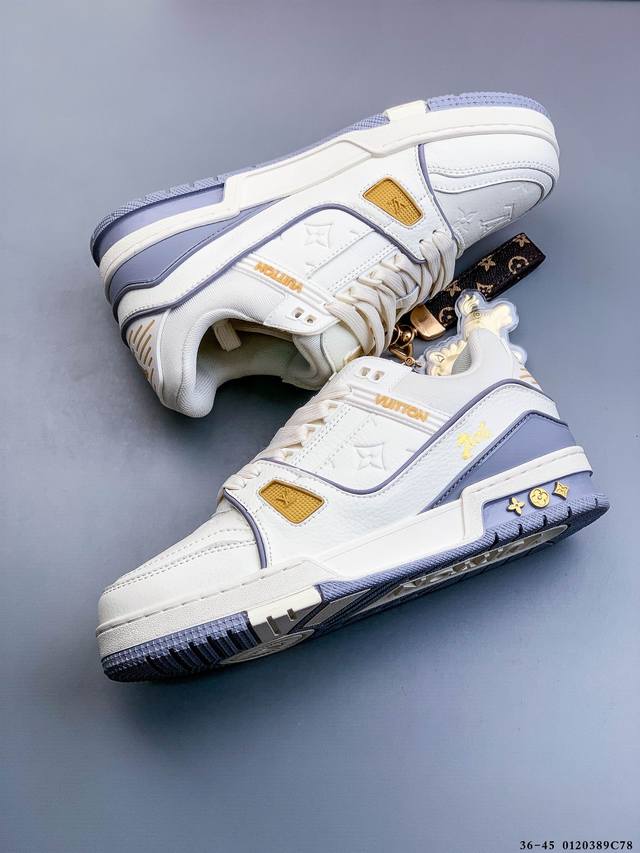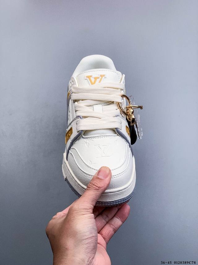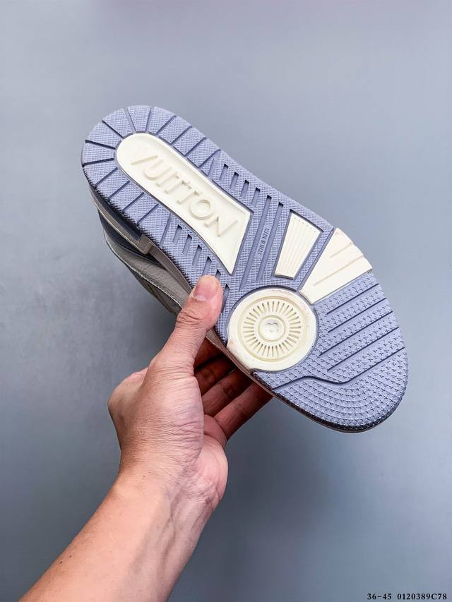 New Arrival Top-Tier Pure Original Import Chip Version, Unrivaled by Any Other Version on the Market! Perfectly Presented Details! DDD Louis Vuitton Trainer Lv Exclusive Newly Upgraded Packaging, Same Quality as Overseas Shopping Agents, High-End Retail, Authentic Foreign Trade, Original Purchase and Development, Zp-Level Complete Packaging, Perfect Last, Correct Color Details Consistent with the Original, Please Distinguish from Common Market Versions. Virgil Abloh Personally Designed the New Lv Louis Vuitton Trainer Sneaker Low Casual Sports Culture Versatile Basketball Shoes, Made in Guangdong. #Upgraded Original Consistent Gift Shoe Box and Complete Import Packaging Instruction Manual Dustproof Bag, Correct Original Imported Plain Grain Calfskin Upper Material, Original Consistent Tpr Glossy Combination Sole #Flexible Drip Plastic Support Plate #New Original Consistent Insole, Super Soft Feel Material. Spring/Summer Fashion Show Reveals the Remarkable Innovation of the Lv Trainer Sneaker in Louis Vuitton's Upgrade and Reconstruction Project. The calfskin leather is recycled from Louis Vuitton Trainer sneakers. Handwritten annotations indicate the shoe's construction, and clear stitching allows customers to hand-cut and complete their designs, showcasing exquisite craftsmanship in every detail. DDD 0120389C78 DDD