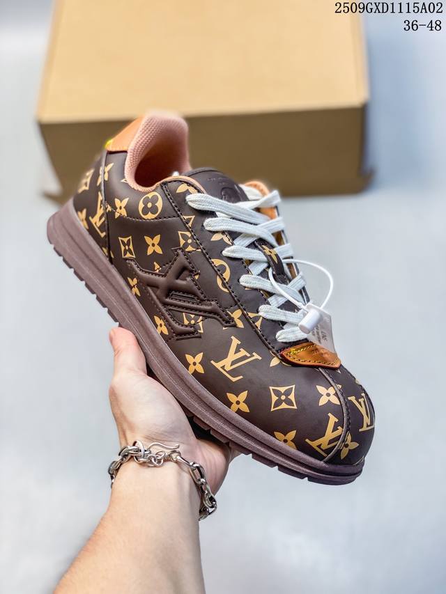 New Season: Lv Buttersoft Sneakers. Designed by Louis Vuitton Men's Creative Director Pharrell Williams, these Lv Buttersoft sneakers pay homage to the 1960s, when sneakers first entered the fashion world. The lambskin and cowhide leather uppers, along with padded inserts, offer a soft and comfortable fit. Embossed Lv lettering, Louis Vuitton leather goods, Pharrell Williams's portrait, and a lobster motif echo the Fall/Winter 2025 men's runway theme. Lambskin and cowhide leather. Laces. Louis Vuitton elements. Hand-stitched upper. EVA outsole with branding. Sizes: 35-45. Code: 09Gxd1115A02.