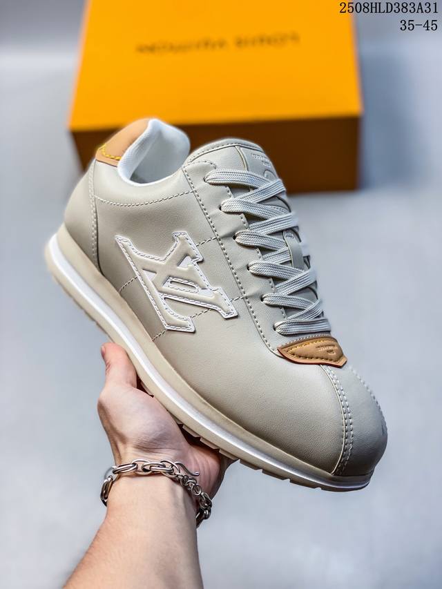 Designed by Louis Vuitton Men's Creative Director Pharrell Williams, these Lv Buttersoft sneakers pay homage to the 1960s, when sneakers first hit the fashion scene. The lambskin and cowhide leather uppers with cushioning provide a soft and comfortable fit. Embossed Lv lettering, Louis Vuitton leather goods elements, Pharrell Williams's portrait, and a lobster motif echo the Fall/Winter 2025 men's runway theme.