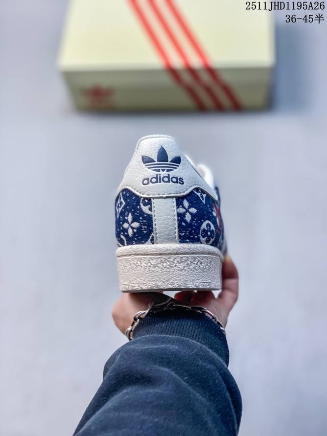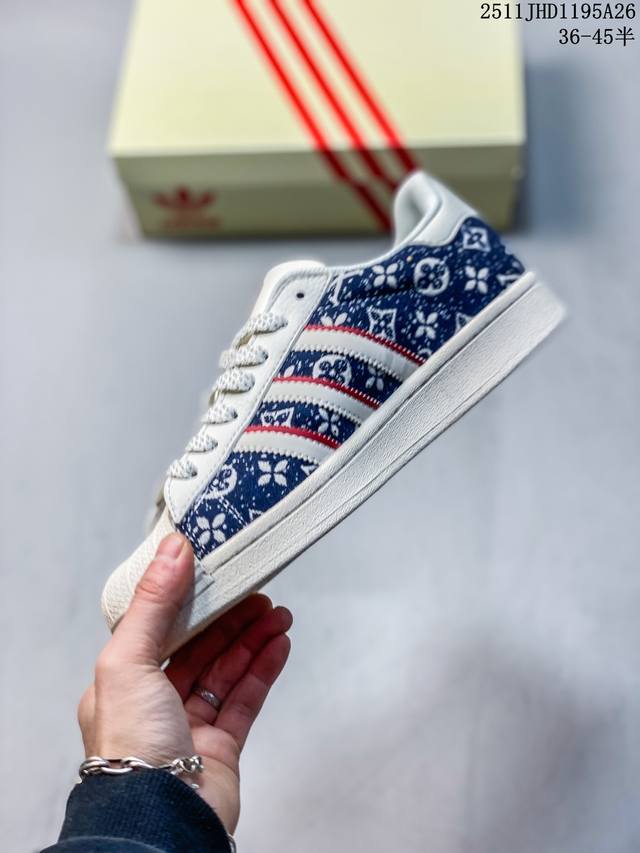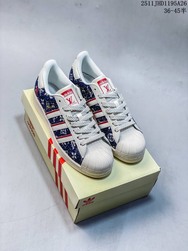 Pure Original Clot X Ad Originals Superstar "Gold Label" # Shell Toe LV Collaboration Limited Edition with Soft Fabric and Blue Print Colorway. The overall design and style of this shoe are very Clot-esque. The shoe uses a versatile white as the main color, while the thickened serrated outsole and iconic shell toe further highlight its unique characteristics. Sizes: 36 36.5 37.5 38 38.5 39 40 40.5 41 42 42.5 43 44 44.5 45 Style Code: Jy8910 11Jhd1195A26
