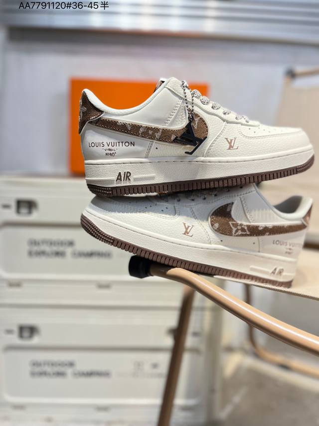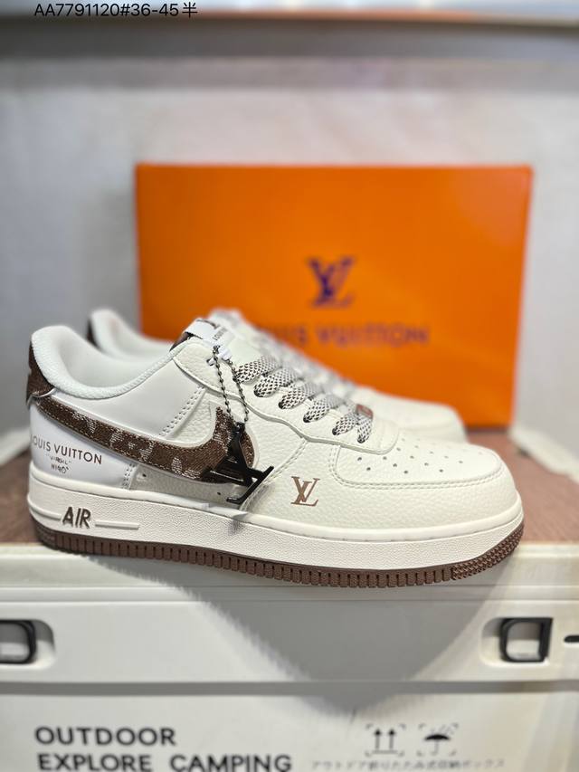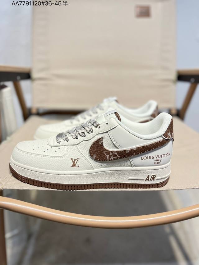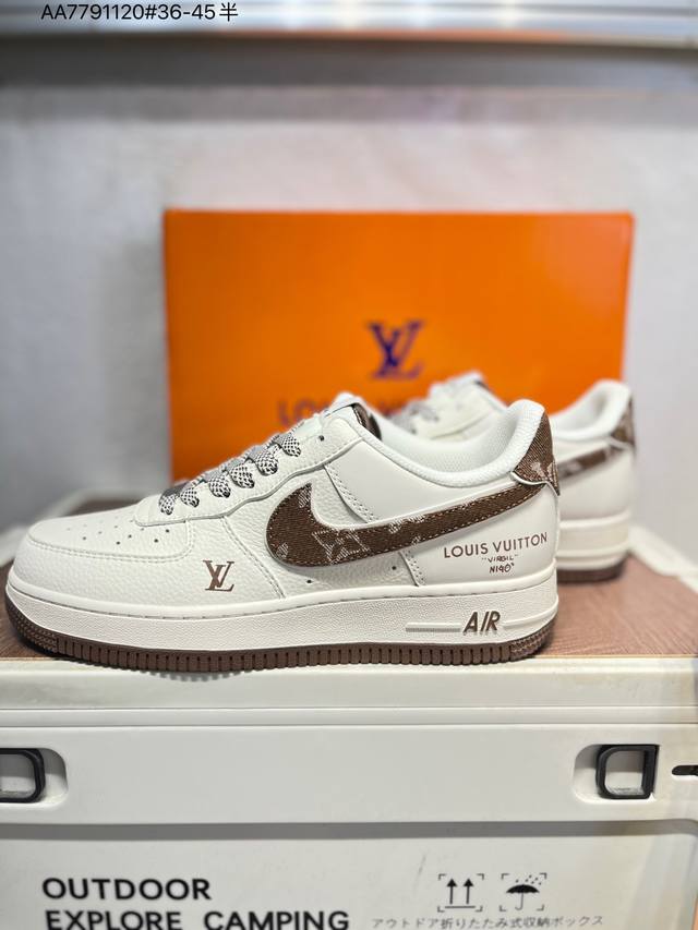 Pure Original Top Layer Version Lv X Nk Air Force 1 '07 Low Air Force 1 Low-Top Casual Sneakers #Custom Leather, Original Last, Original Cardboard, Authentic Air Force Design, High Cleanliness, Built-in Full-Length Air Cushion Sm6668 Aa7791120 #36-45 Half Size