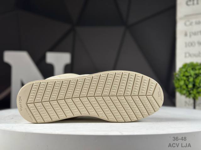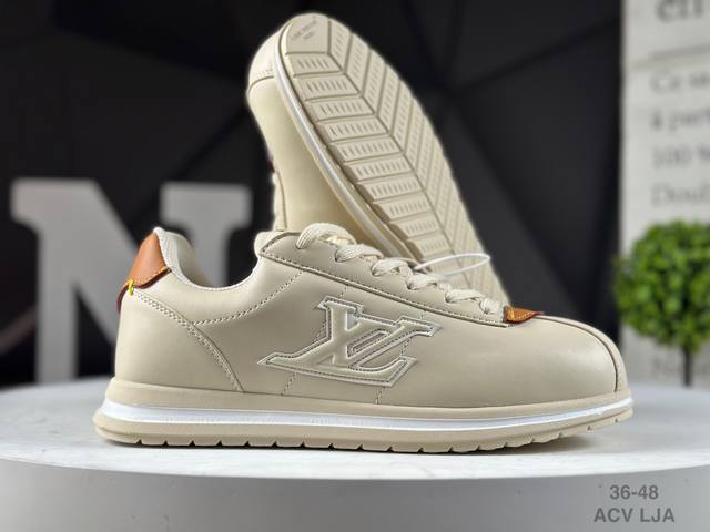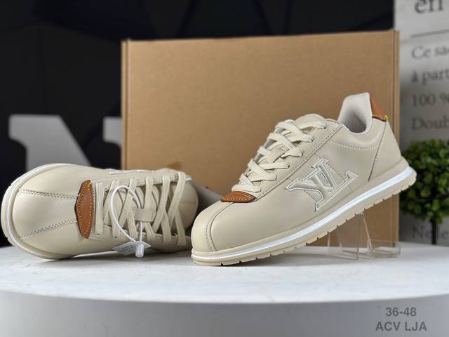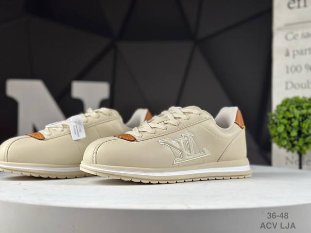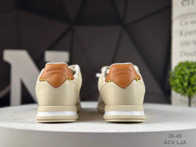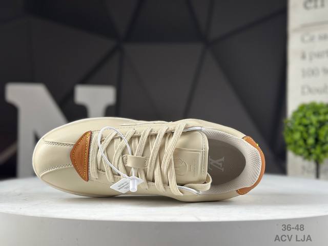 The LV Buttersoft sneaker, designed by Louis Vuitton Men's Creative Director Pharrell Williams, pays homage to the 1960s, when sneakers first entered the fashion world. Its lambskin and cowhide leather uppers with cushioning provide a soft and comfortable fit. The LV monogram, Louis Vuitton leather goods elements, Pharrell Williams' portrait, and lobster motif are embossed, referencing the Fall/Winter 2025 men's runway theme.