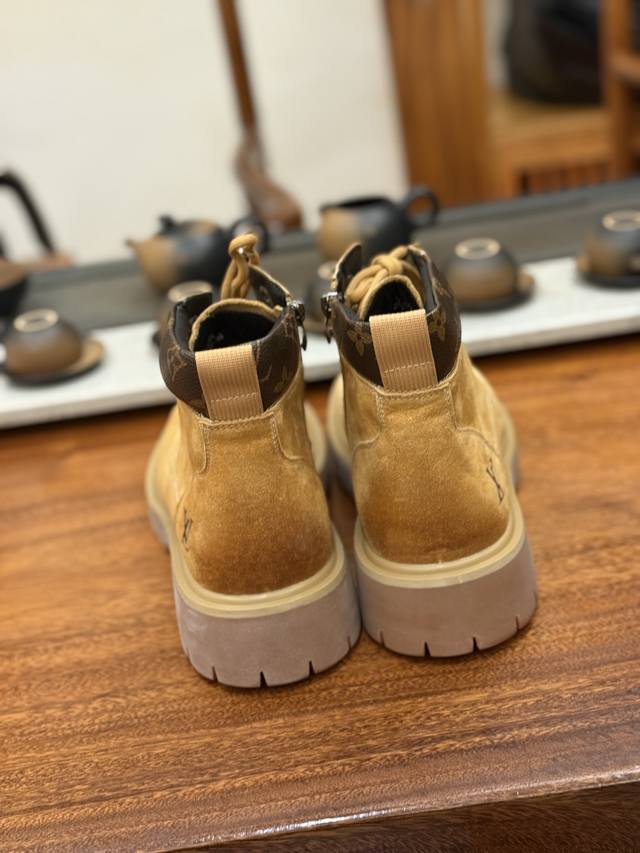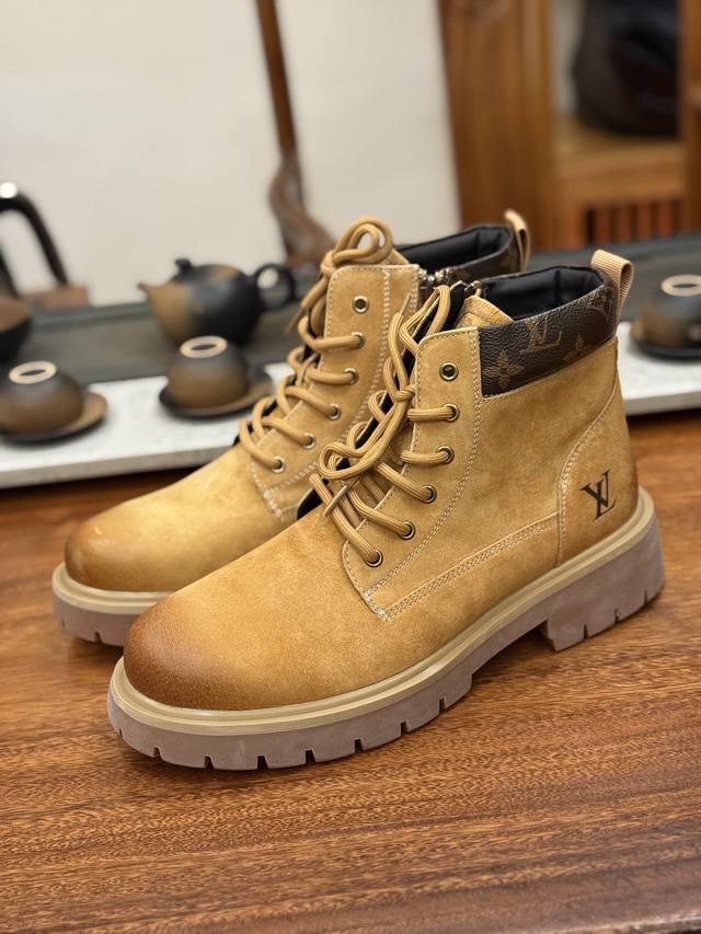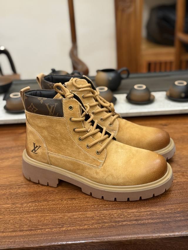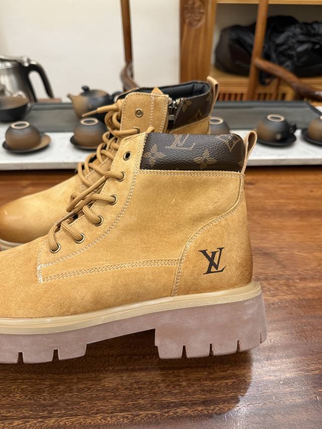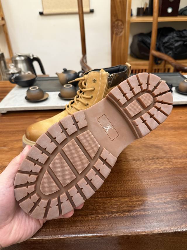 The Lv x Timberland Lv collaboration features a luxurious, high-end yellow boot, a fusion of a trending brand and a timeless classic. #ShoppingExclusive. High-quality, high-elasticity. Modern, anti-slip rubber foam outsole with ultra-lightweight lace-up design for easy on and off. Made of TPU molded leather upper. #Eva Wing technology outsole for anti-slip, wear-resistant, and excellent elasticity. Pharrell Williams fully embodies his role as Louis Vuitton's Creative Director. This shoe redefines the classic design of the 6-inch yellow boot, paying homage to the classic yellow Grandmaster Flash of 1996. The original hardware and buckle have been upgraded. Made in Zhongshan, the leather is imported from a factory. The sole is individually molded with the correct logo. The original, consistent top-grain nubuck leather is paired with a classic monogram collar. Brand new in the original packaging and box. Available exclusively on the market. Sizes: 38-44.