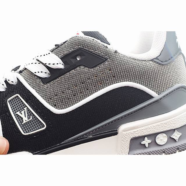 Lv Casual Fashion Children's Sneakers DDD Lv sneakers are reinterpreted in black and silver with sparkling rhinestones, creating a striking look. The graphic color scheme highlights the exquisitely crafted upper, stitched by Louis Vuitton artisans in 24 hours. The two-tone rubber outsole with its embossed pattern is also eye-catching. DDD Sizes: 26-37 DDD Style Code: Rhinestone Black/Grey DDD
