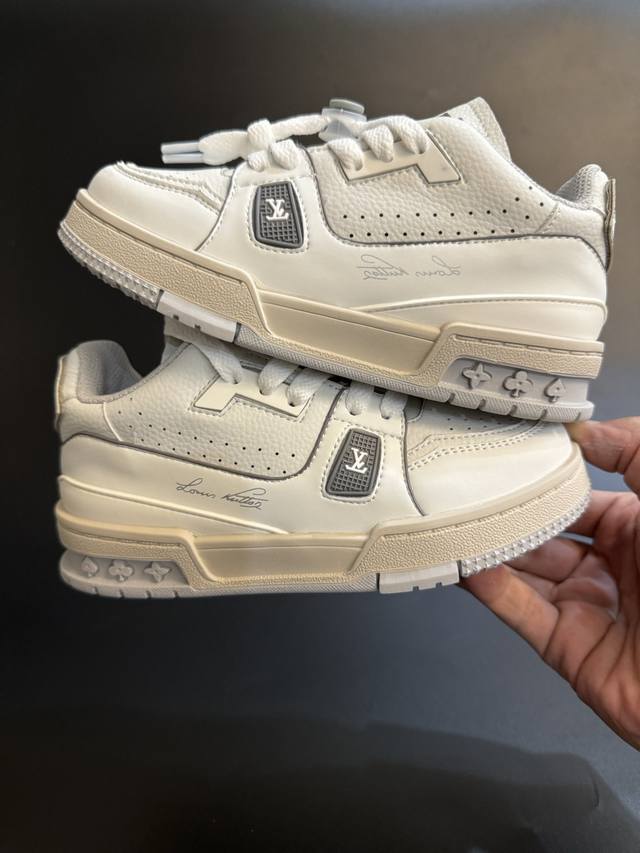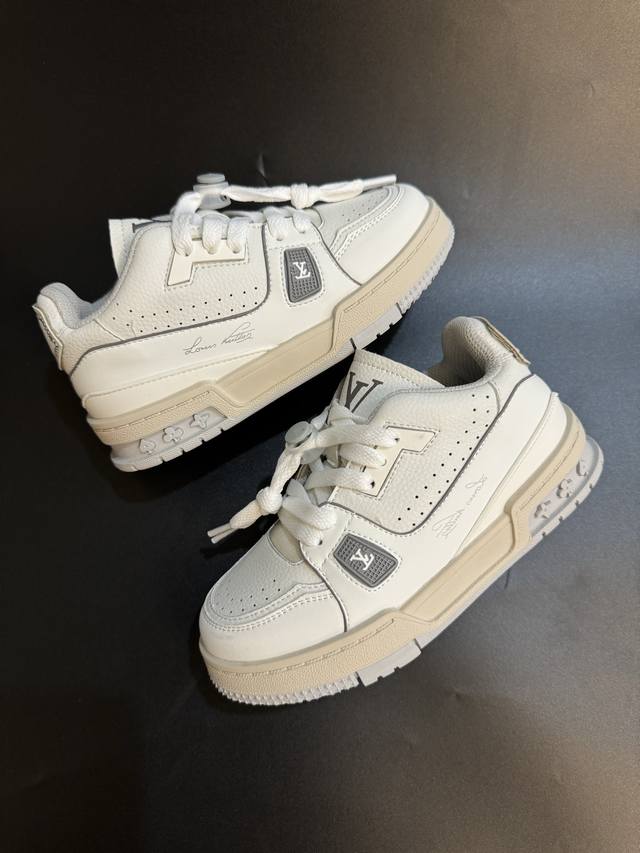 Lv New Fashionable Shoelace Buckle Children's Sneakers DDD Size: 26-37 DDD Classic Brand Sneakers DDD Versatile and Stylish, Non-slip Rubber Sole DDD Shoelace Buckle Design for Easy On and Off DDD High-Quality Leather Patchwork, Full of Texture DDD