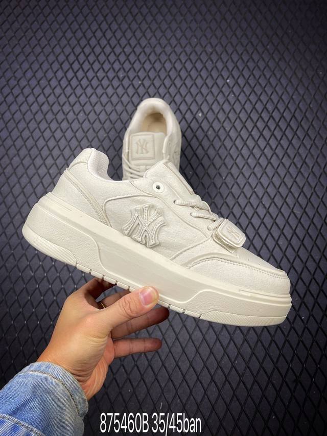 Factory Grade Mlb Chunky Liner Mid Classic Monogram Platform Casual Shoes Ny Print Limited Edition Cowhide Leather Sneakers
