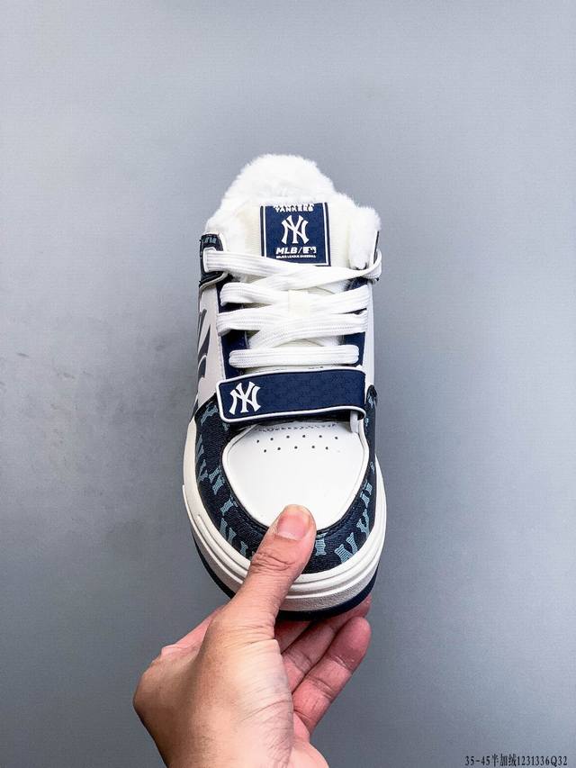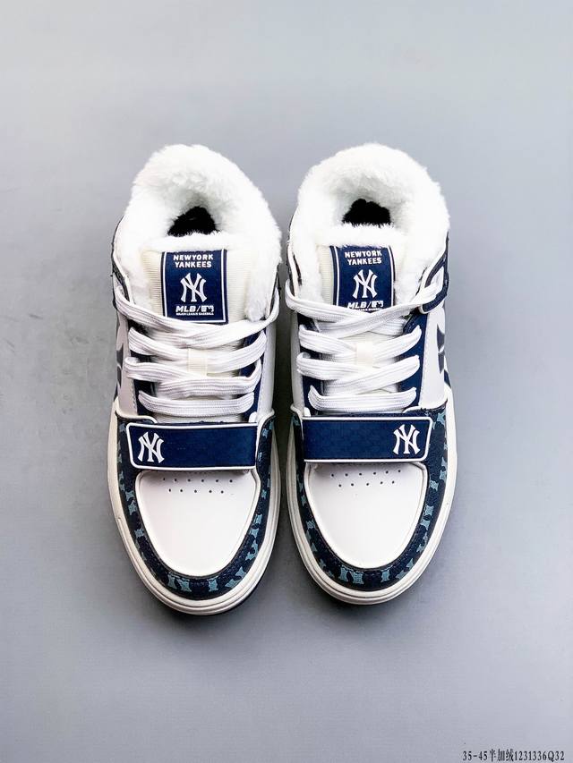 Company Grade! Mlb Chunky Liner Fleece-Lined Casual Running Shoes, Ny Printed Cowhide Leather Sports Shoes, Ddd 1231336Q32 DDD