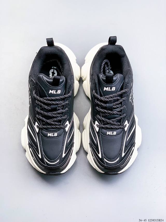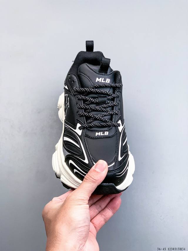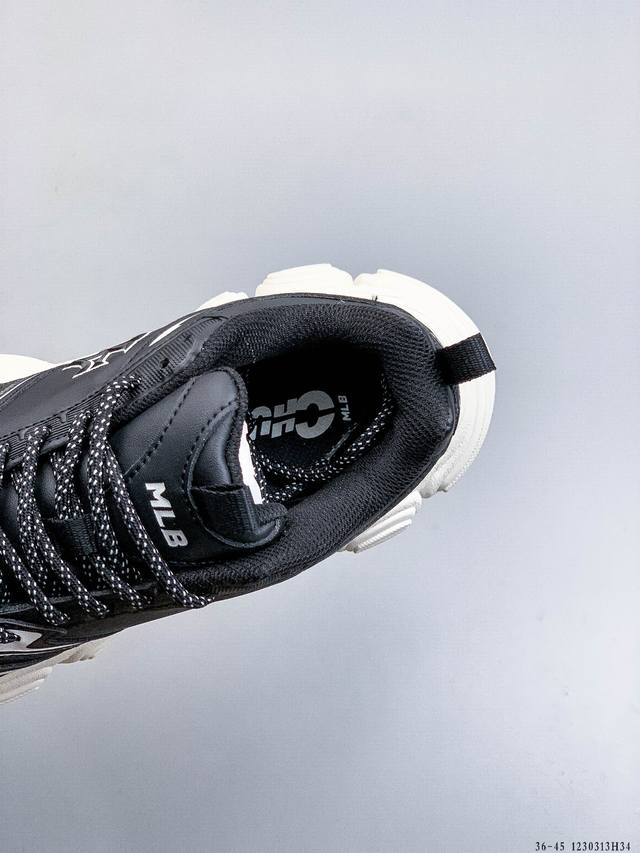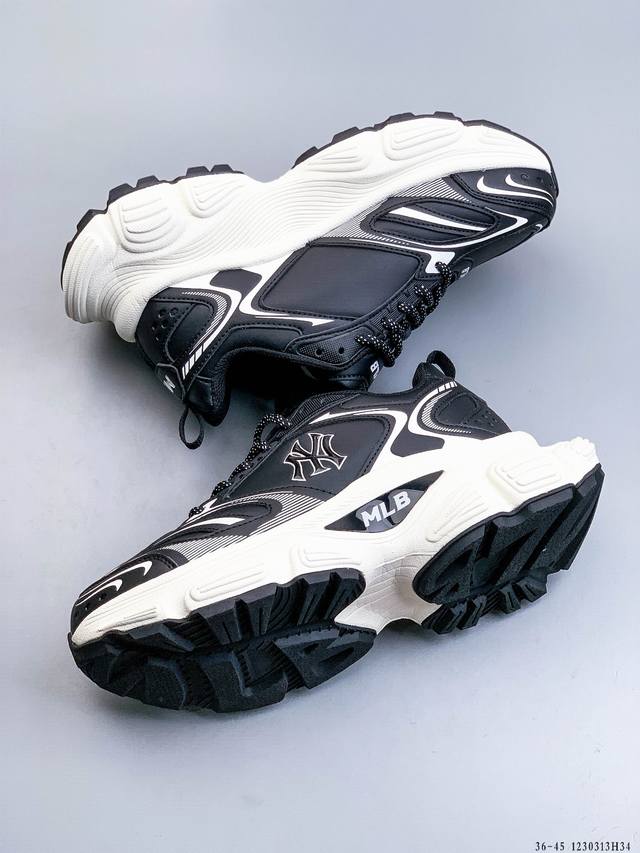 Company Grade! Mlb Winner Chunky, Yu Shuxin's Same Style, New Model 25 Trendy Thick-Soled Fashion Street Cyber Dad Shoes Ddd. It features a retro-futuristic design, with a mesh upper paired with metallic materials, presenting a streamlined shape. The shoe is adorned with the New York Yankees logo. The sole has a very exaggerated and eye-catching silhouette, with the Mlb logo printed transparently on the side. Ddd 1 313H34 DDD
