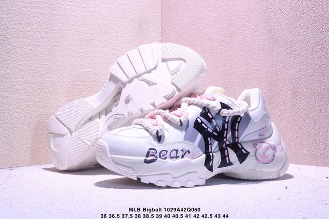 Mlb Bigball Chunky Window Velvet Monogram Low-top Platform Running Shoes, Limited Edition with Print, Made of Genuine Leather, Authentic Label, Half Size Available (See Pictures)
