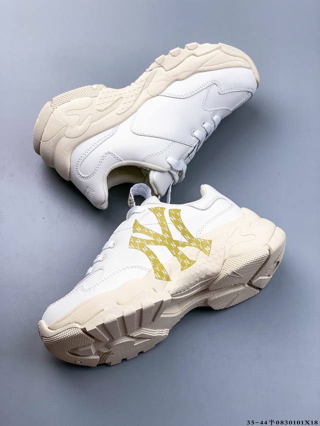 / Mlb Chunky Liner Thick-soled Casual Running Shoes Ny Printed Cowhide Material Sp