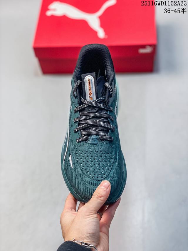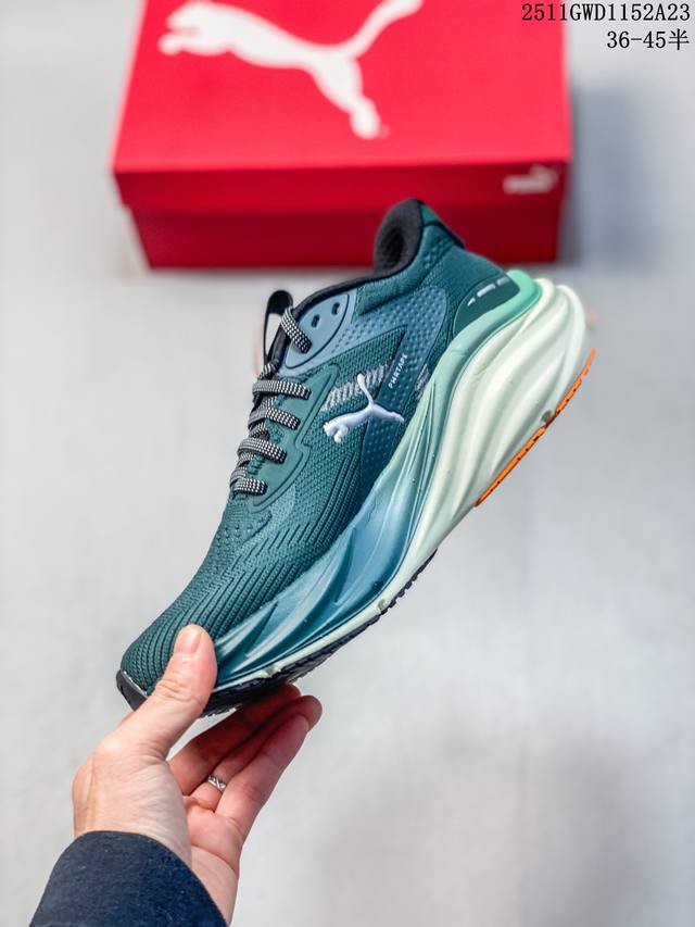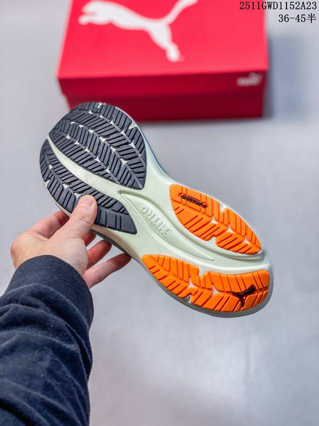 A supercritical running shoe that combines style and comfort: Puma Magnify Nitro 3. Suitable for daily training and can also be a fashion statement. **Stylish Design** Inspired by light refraction, the upper features a multi-spectral design. Engineered mesh material provides breathability and a snug fit. Round toe design and padded collar ensure a comfortable fit. **Supercritical Cushioning** Nitrofoam technology provides lightweight rebound. 40mm x 30mm midsole thickness with a 10mm drop ensures a smooth transition and effective impact absorption. **All-Round Performance** Puma Magrip outsole provides stability on both dry and wet surfaces. Weighing only 260 grams per shoe. ** Perfect Fit** For runners seeking comfortable training, athletes needing a shoe with good recovery, and fashion-conscious runners who value a balance between style and function, choose the Puma Magnify Nitro 3 and make every step a stylish and comfortable experience. DDD *A fusion of technology and aesthetics, redefining everyday training shoes* Sizes: 36 37 37.5 38 38.5 39 40 40.5 41 42 42.5 43 44 44.5 45 DDD 11Gwd1152A23 DDD