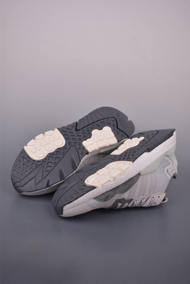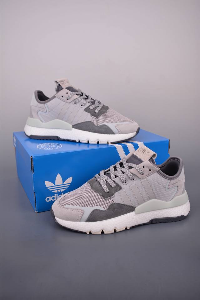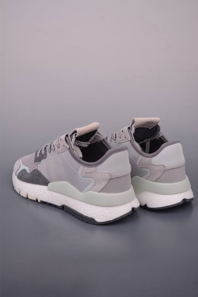 Ad Nite Jogger Boost gets a new upgrade. This Trefoil collaboration is the top choice for the authentic Night Runner. Made with original materials and a genuine outsole, this retro running shoe features a privately molded mesh upper with suede panels. The shoe boasts a striking retro style, accented with 3M reflective detailing on the toe and heel. The midsole utilizes full-length Boost technology, boasting a substantial thickness and excellent foot feel. Official item number: G263153226. Sizes: 39, 40, 40.5, 41, 42, 42.5, 43, 44, 44.5, and 45.