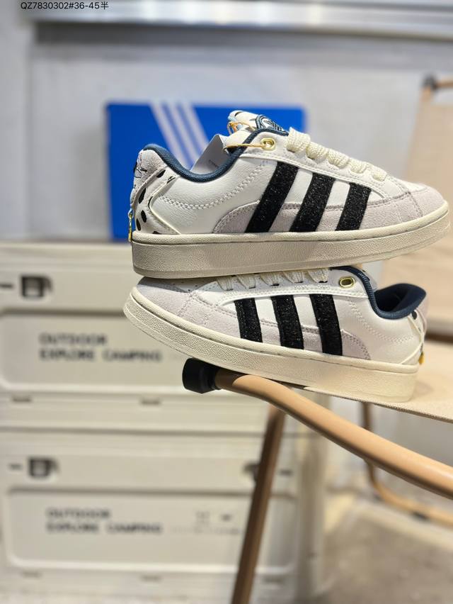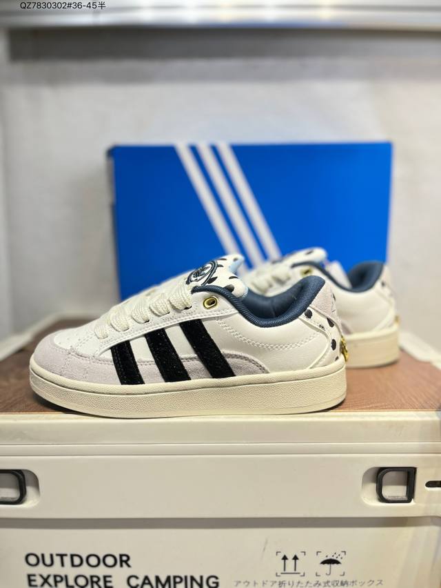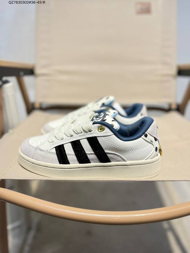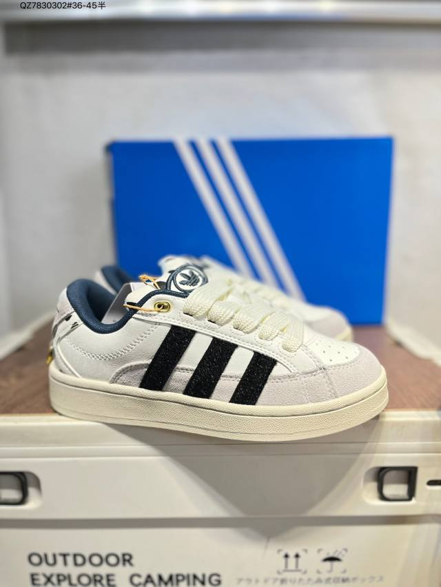 Ad Originals Campus 00S Beta, a classic retro low-top, versatile casual sneaker with a classic, retro feel. The original shoe features a correct design, original first-layer SD leather throughout, and a clean, wide shoebox. This time, Originals chose to create a new version of the classic retro Campus silhouette. This silhouette has been the subject of numerous collaborations, and Edison Chen was particularly fond of it back then. Its design rivals that of popular silhouettes like shell toes and Forums. This time, the Campus has departed from its slender '80s silhouette, with larger tongues, uppers, soles, and even details, creating the wide silhouette popular around the turn of the millennium. Consequently, the shoe's name has been changed to Campus 00S. The upper is constructed of suede with a white accent, while the texture of regular leather continues the classic Campus design. The tongue is padded for a rounded look, complementing the light blue colorway. The blue figure is truly adorable, and the tongue features a new Trefoil logo, unlike previous Campus models. To make the shape more millennial, the shoelaces are also widened. Jq8733 Qz7830302#36-45 half