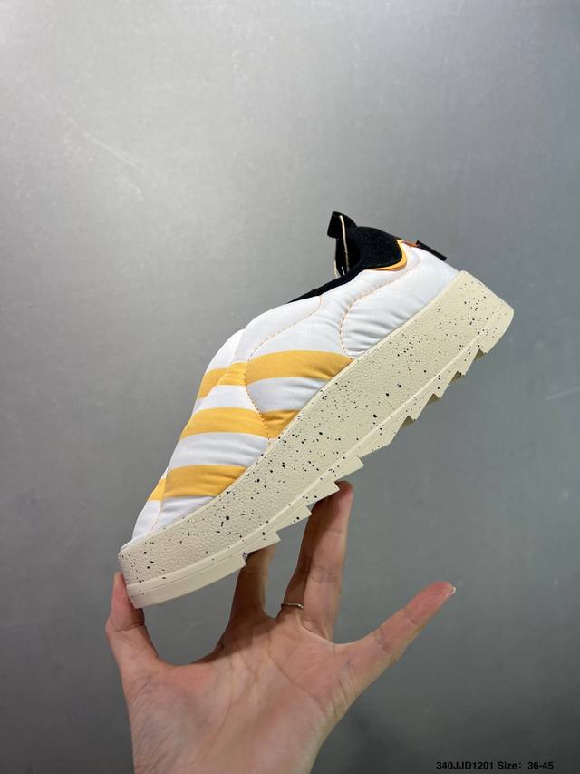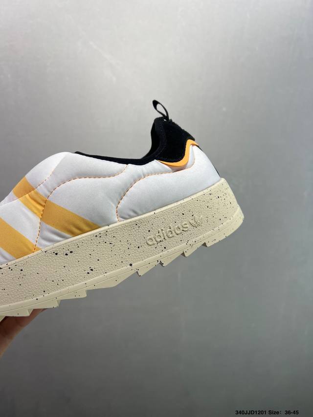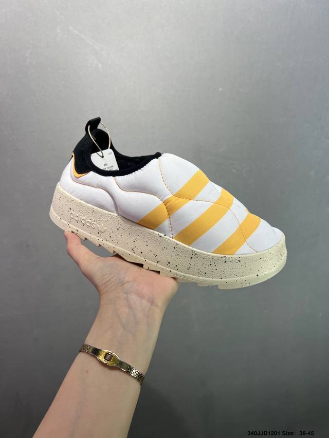 Ad Originals Puffylette Slip-on Waterproof Warm Sneakers If4326. The upper is made of a woven material with a soft lining, featuring a prominent Three Stripes pattern on the toe. The heel and insole also feature the Trefoil logo. Extending down are the branded midsole and rubber outsole. The Originals Puffylette's initial colorway is a black and white theme. The new slip-on Puffylette is released with a soft woven material and a prominent Three Stripes pattern on the toe. Sizes: 36 36.5 37 38 38.5 39 40 40.5 41 42 42.5 43 44 44.5 45 DDD Code: 340Jjd1201 DDD