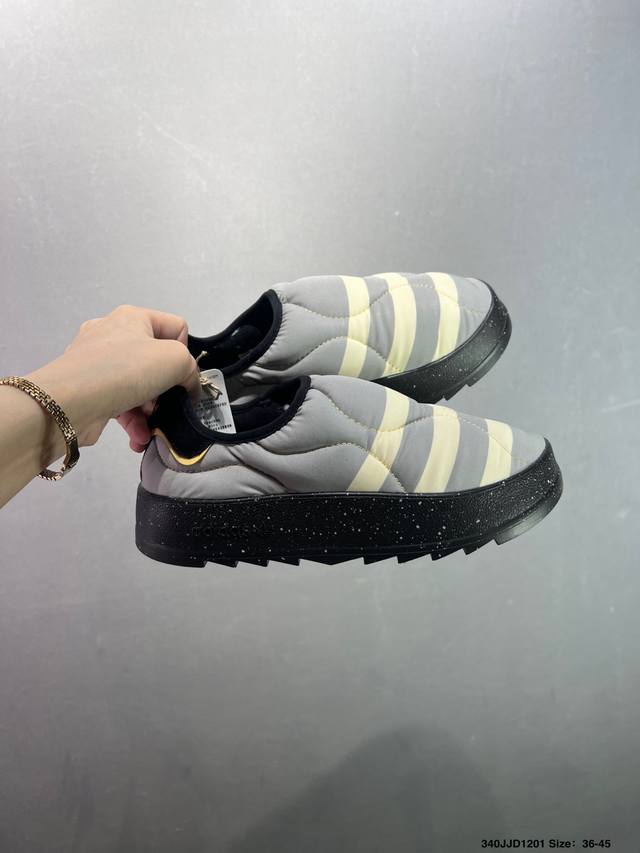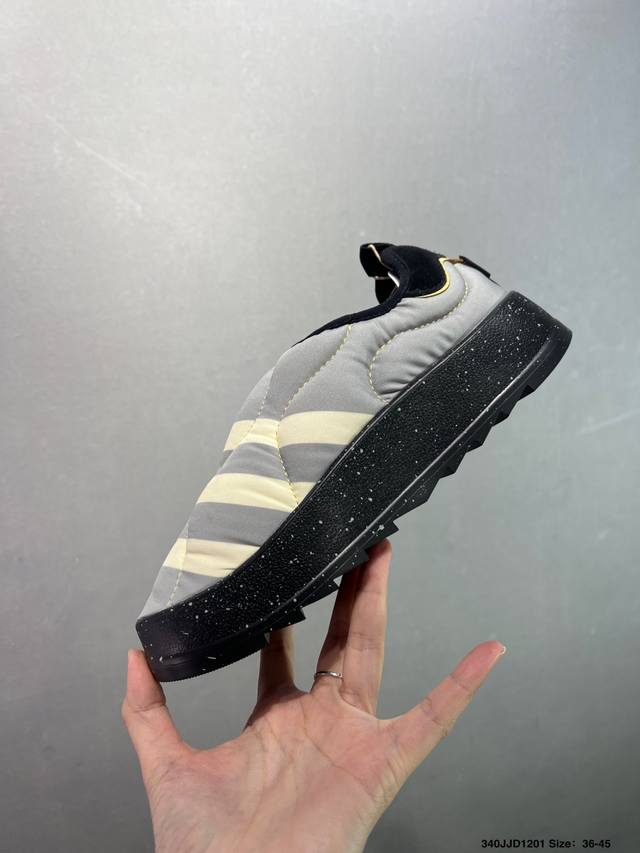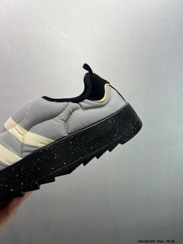 Ad Originals Puffylette Slip-on Waterproof Warm Sneakers If4326. The upper is made of a woven material with a soft lining, featuring a prominent Three Stripes pattern on the toe. The heel and insole also feature the Trefoil logo. Extending down are the branded midsole and rubber outsole. The Originals Puffylette's initial colorway is a black and white theme. The new slip-on Puffylette is released with a soft woven material and a prominent Three Stripes pattern on the toe. Sizes: 36 36.5 37 38 38.5 39 40 40.5 41 42 42.5 43 44 44.5 45 DDD Code: 340Jjd1201 DDD