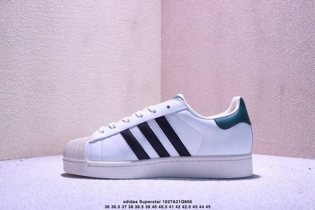 Ad Originals Superstar Classic Retro Shell Toe Platform Shoe Born in 1969, the Superstar was the first low-top basketball shoe to combine a full leather upper with a rubber toe. Initially, the Superstar appeared as a low-top version of the high-top Pro Model, but its unique and striking rubber toe design made it widely known, affectionately nicknamed the "Shelltoe." In the 1970s, nearly 30-40% of NBA players used the Superstar as their on-court shoe. After continuous improvements and development in the 1980s, the Superstar gradually became a fashionable and trendy shoe spanning fashion, music, street culture, leisure, and sports.