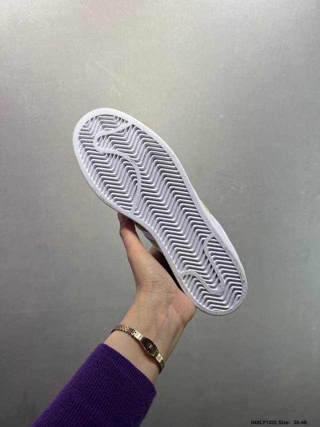 Ad Originals Superstar Classic Retro Shell Toe Sneaker Eg4959 Born in 1969, it was the first low-top basketball shoe to combine a full leather upper with a rubber toe. The Superstar initially appeared as a low-top version of the high-top basketball shoe Pro Model, but its unique and striking rubber toe design made it widely known, affectionately called the "Shelltoe." In the 1970s, nearly 3-4 NBA players used the Superstar as their on-court shoe. After continuous improvements and development in the 1980s, the Superstar gradually became a fashionable and trendy shoe spanning fashion, music, street culture, leisure, and sports. Sizes: 36 36.5 37 38 38.5 39 40 40.5 41 42 42.5 43 44 44.5 45 Ddd Code: 048Ly1225 DDD
