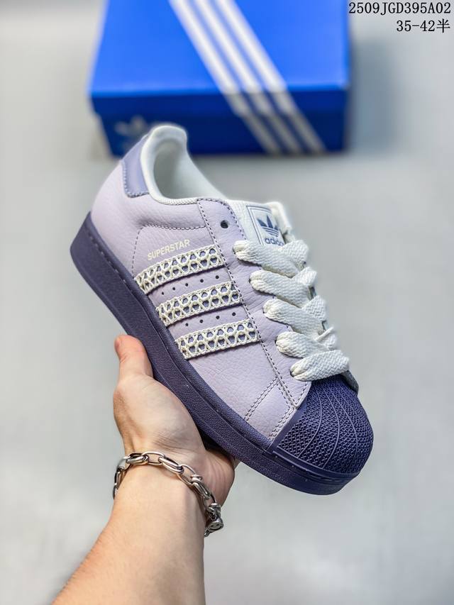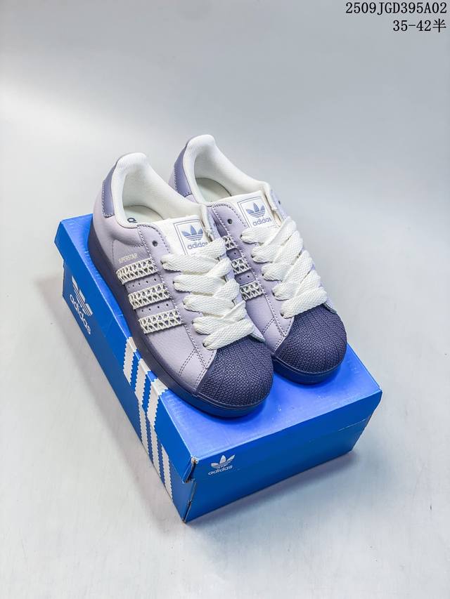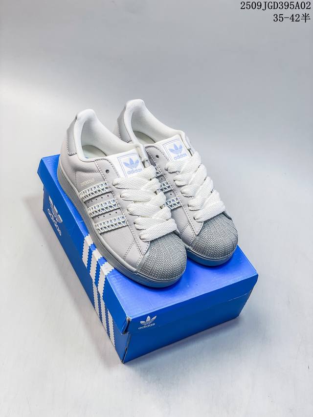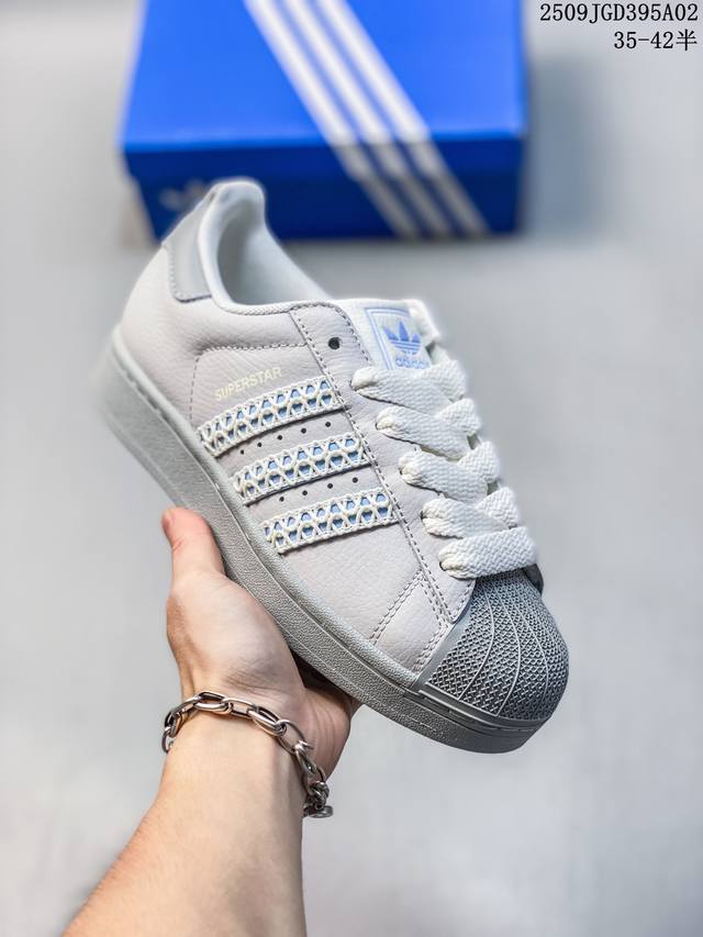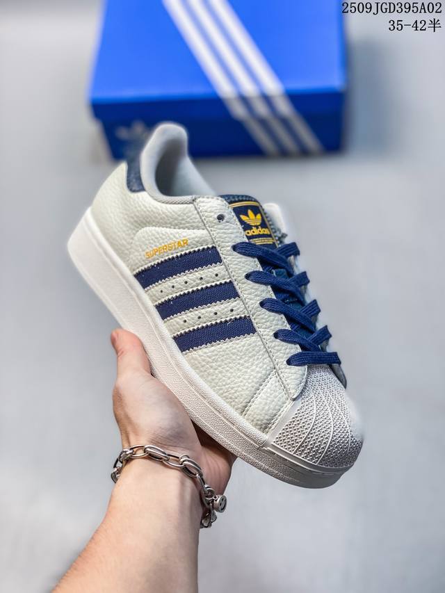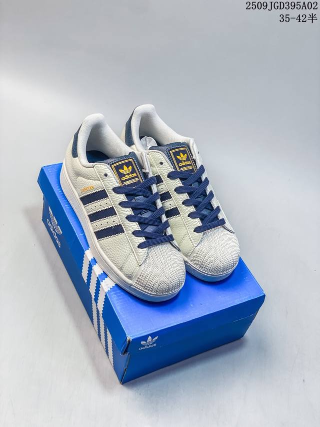 Ad Originals Superstar classic retro shell-toe sneakers, first introduced in 1969, were the first low-top basketball shoe to combine a full leather upper with a rubber toe cap. The Superstar initially debuted as a low-top version of the high-top Pro Model, but its distinctive and eye-catching rubber toe cap became widely known, earning it the nickname "Shelltoe." In the 1970s, nearly 3 in 4 NBA players used the Superstar on court. After the 1980s, through continuous refinement and development, the Superstar gradually became a fashionable shoe across fashion, music, street culture, leisure, and sports. Sizes: 36 37 38 39 40 41 42 43 44 45