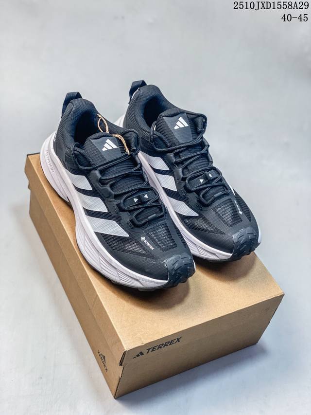 Featuring a waterproof and breathable Gore-Tex overlay, helping you confidently traverse flooded roads; paired with an EVA frame, accompanying you confidently over rugged terrain. Includes a Boost midsole for added energy. Regular fit, lace-up design, mesh upper with unique accents, Gore-Tex overlay, Boost midsole, external heel clip, and EVA frame. Continental rubber outsole.