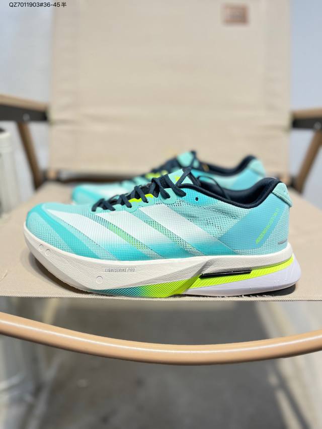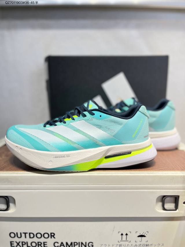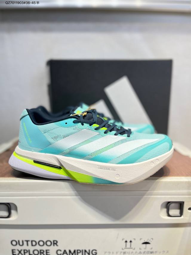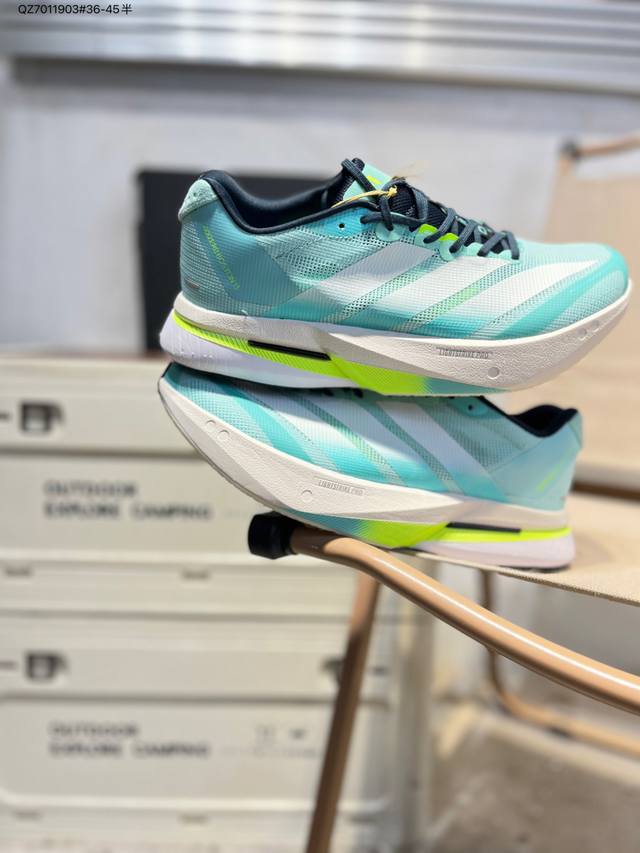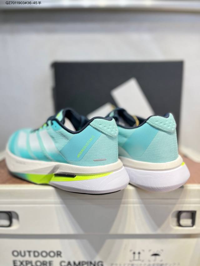 Adizero Boston 11. The Boston 11 speed running shoe exudes a sense of speed. The overall design is extremely fast-paced, with a woven upper and thermosetting rubber accents giving the shoe a high-tech and powerful look. The midsole features an exaggerated forefoot-to-heel thickness difference, and the heel extends significantly outwards, creating a very stylish design. Product Code: Js4945 Qz7011903#36-45 (Half)