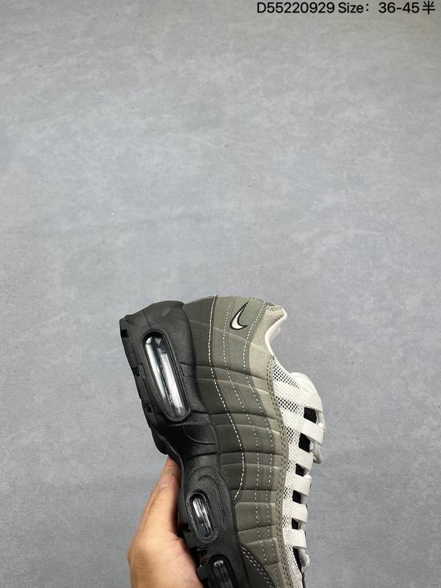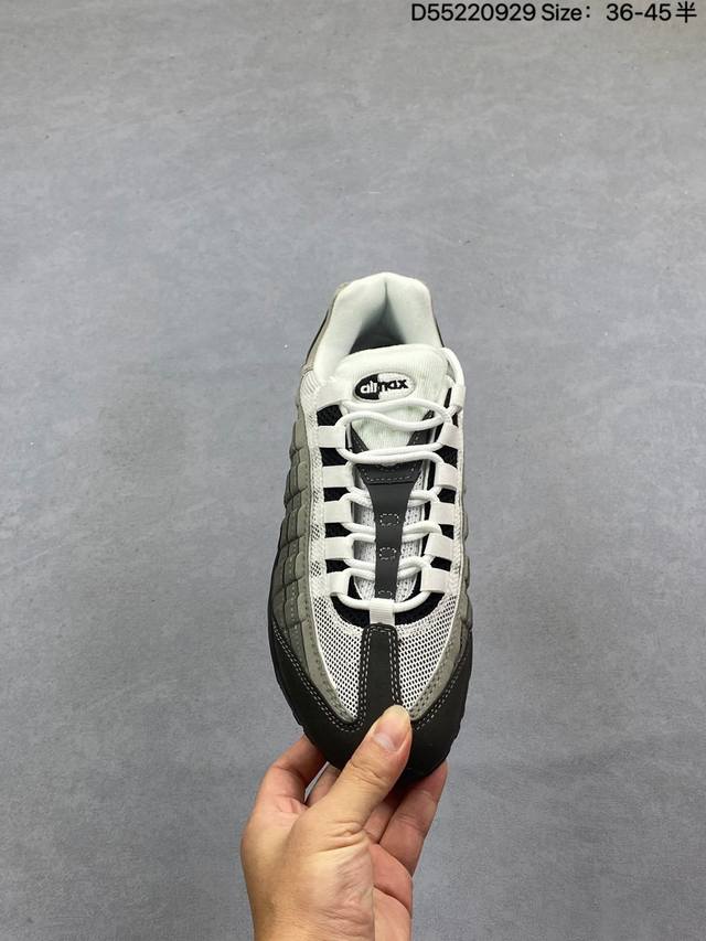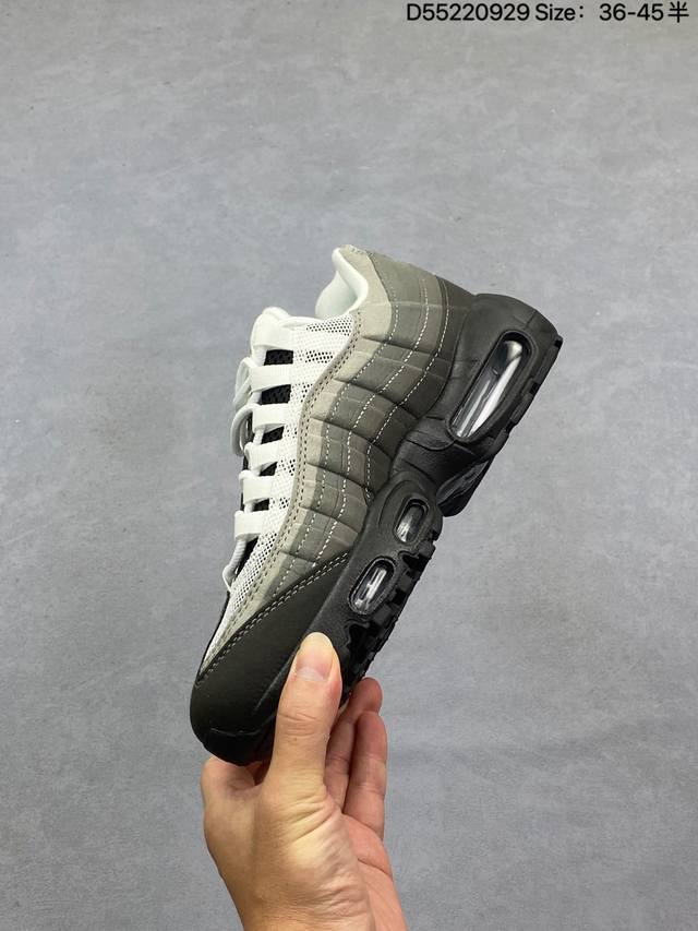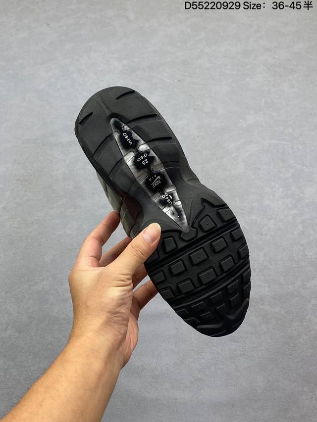 Air Max 95 Sp sneakers, air-cushioned height-enhancing running shoes, versatile casual shoes for men and women, retro dad shoes for couples. This Air Max 95 X Stash Black and Harbor Blue features an upgraded upper, combining natural and synthetic leather with durable textiles, meticulously reimagined for a modern feel. A colorway of black, dark navy, obsidian, dark mist gray, royal blue, and aquamarine is complemented by a welded overlay for a seamless finish, adding to the shoe's appeal. Unlike the original model, this version features exposed webbing lace loops, rather than concealed beneath the upper. The speckled midsole, equipped with Air Max cushioning, provides exceptional comfort anytime, anywhere, and a zippered tongue allows for custom styling.