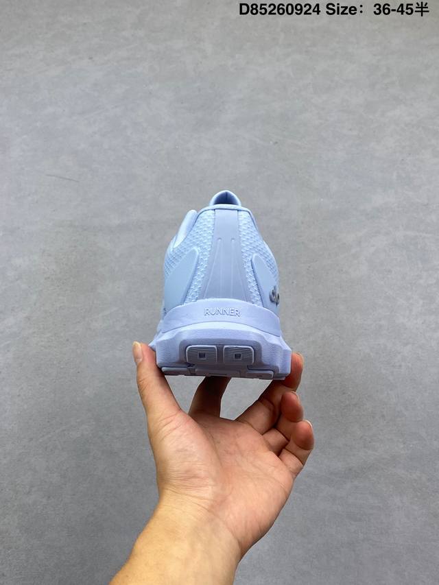 Alo Yoga Alo Runner low-top sneakers are unisex and comfortable, featuring a minimalist, non-slip, and durable design. Their recognizable design, with its sleek lines and perfectly curved curves, embodies the brand's unique aesthetic. Simple yet modern, they're sure to captivate at first glance. Alo's white sneakers are meticulously crafted. The upper's premium fabric is soft yet resilient, with a fine texture and excellent breathability, creating a feeling of being enveloped in a gentle cloud, keeping your feet dry and comfortable. They withstand the wear and tear of time, maintaining their quality and providing instant comfort. The ergonomically designed footbed perfectly supports the arch, ensuring a gentle response to every impact point while walking. A stabilizing heel clip provides stability and support, while a breathable double-layer mesh optimizes airflow. A dynamic B dual-density midsole provides soft cushioning, while a multi-terrain outsole with treads provides full-length traction.
